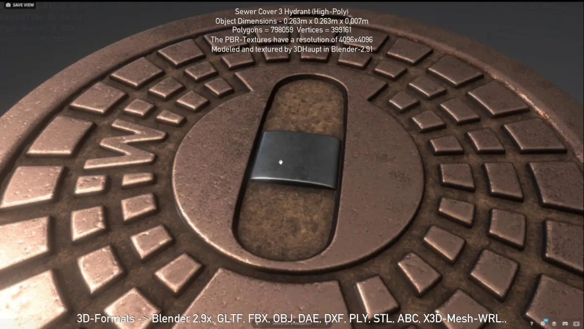 Here is the pbr-textured high-poly version of the sewer cover no. 3 for hydrants.