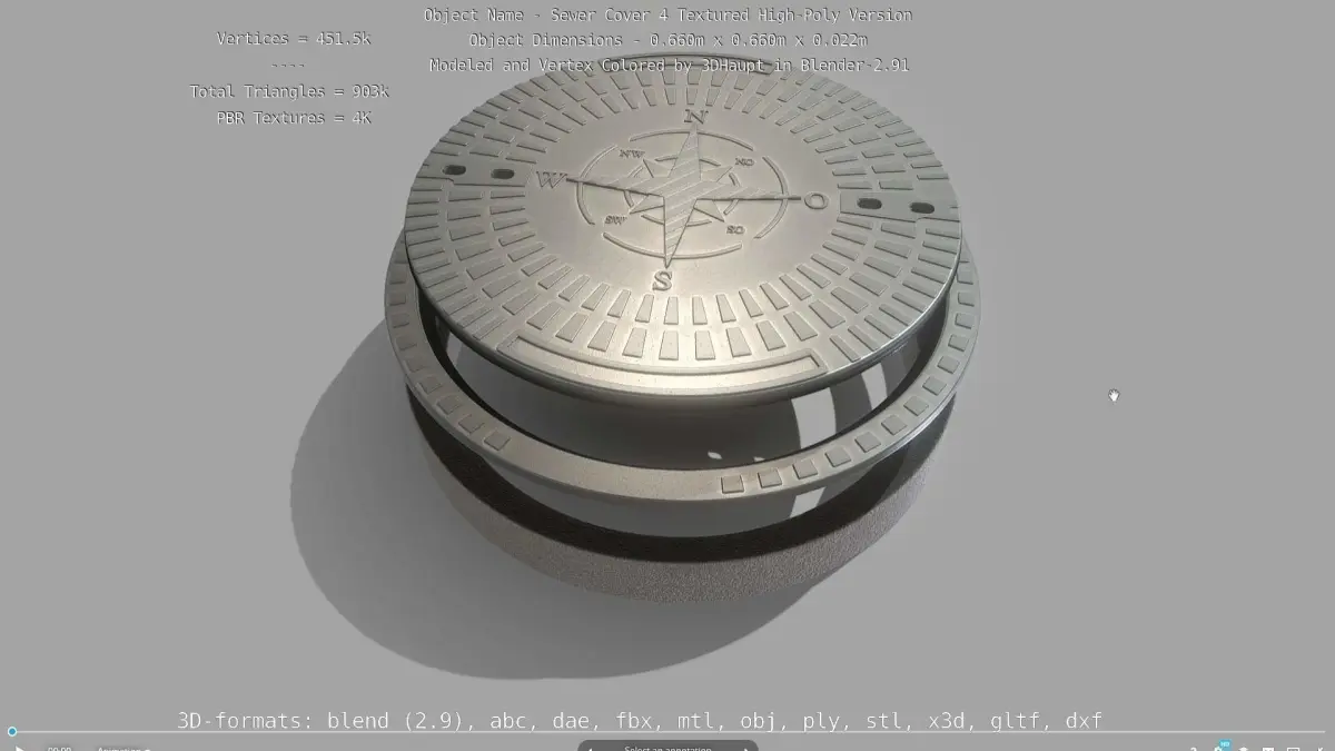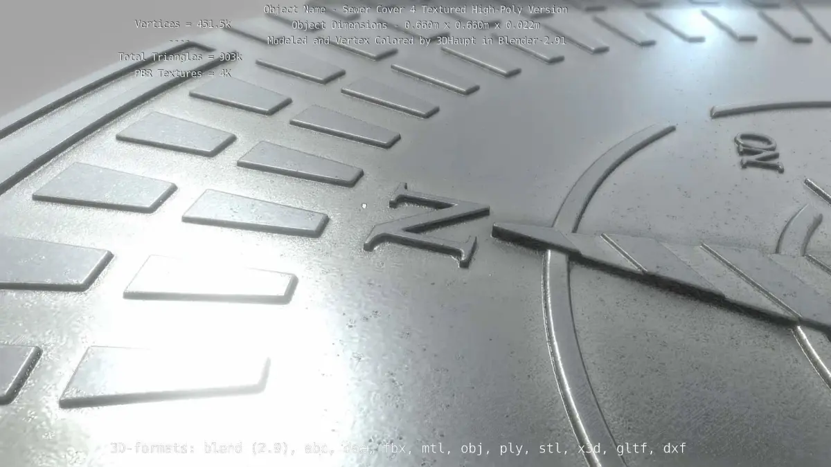 Here is the textured high-poly version of sewer cover 4.