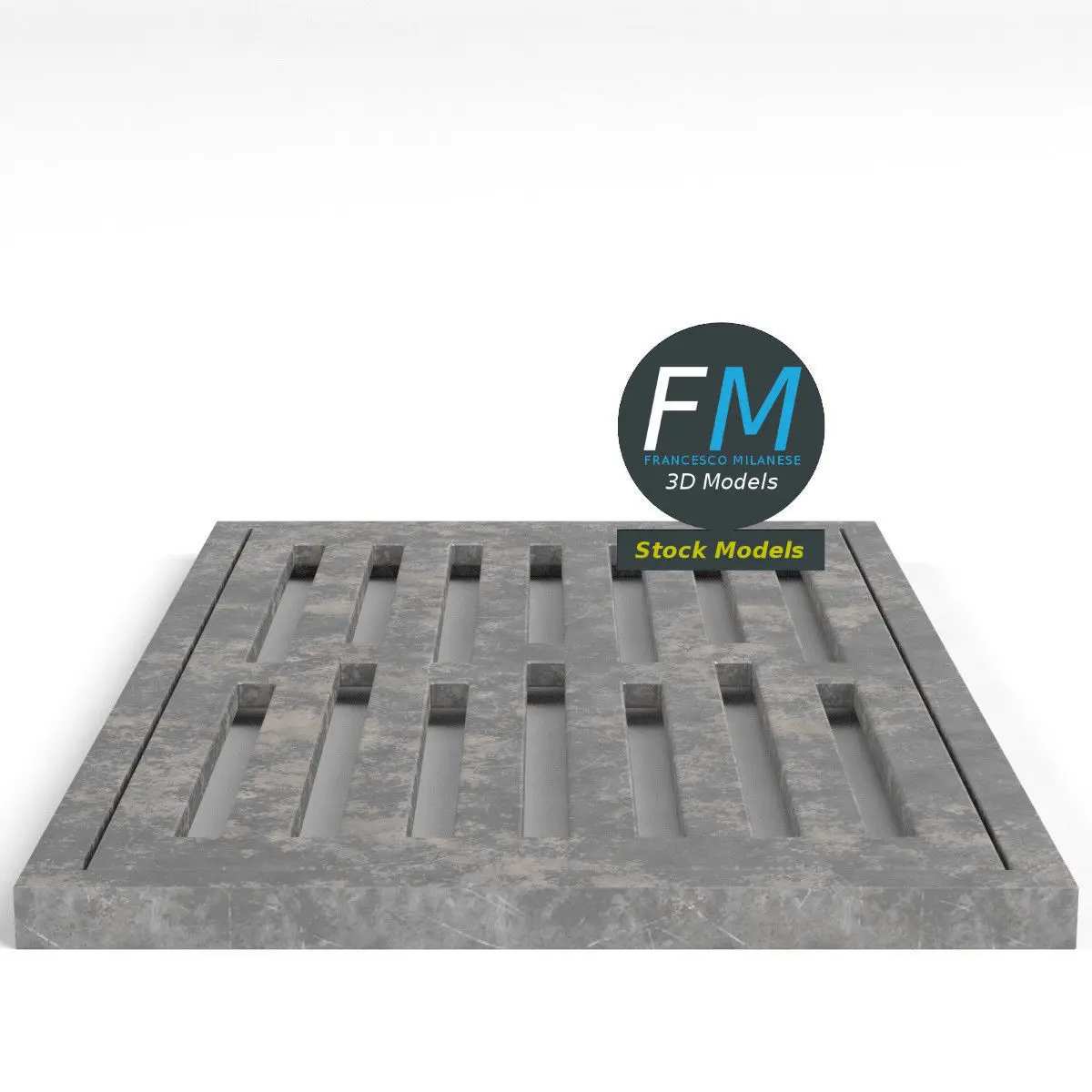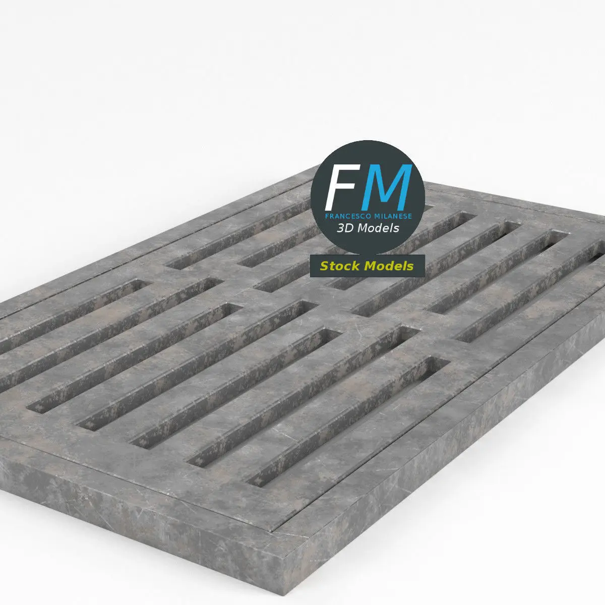 Sewer grate 3D Model, nr. 3 in my collection. 2 individual objects (frame, grate), sharing the same non overlapping UV Layout map, Material and PBR Textures set. Production-ready 3D Model, with PBR materials, textures, non overlapping UV Layout map provided in the package.Quads only geometries (no tris/ngons).Easily customizable: UV unwrapped geometries; UV Layout maps provided in the package as png with alpha images.Each Object, Material or Texture provided in the package has a unique, meaningful name.Made in Blender 3.6.1 LTS with Cycles Principled BSDF PBR shader with textures included (Eevee compatible), then exported to OBJ and FBX; materials and textures made in Substance Painter (Adobe 3D Painter), exported for PBR, Cycles, V-Ray, Unity, Unreal.PROMO IMAGES: the first image has been rendered in Cycles for Blender; in particular, you can find 11+ promo images in this description: