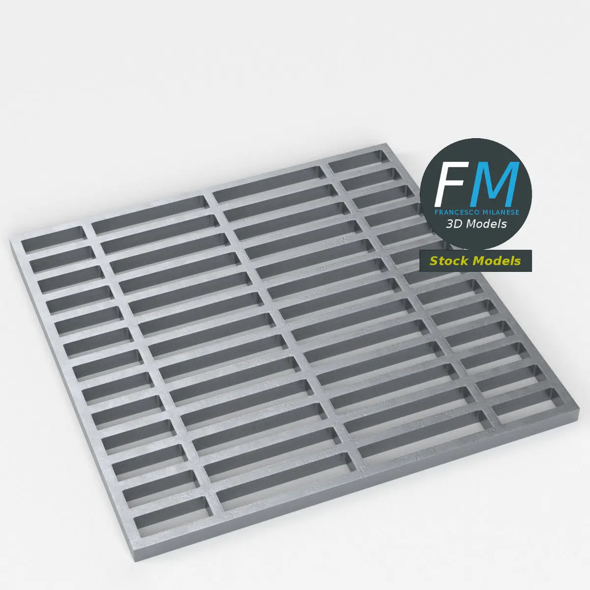 Sewer grate (open mesh steel grating flooring) 3D Model, nr. 4 in my collection. Production-ready 3D Model, with PBR materials, textures, non overlapping UV Layout map provided in the package.Quads only geometries (no tris/ngons).Easily customizable: UV unwrapped geometries; UV Layout maps provided in the package as png with alpha images.Each Object, Material or Texture provided in the package has a unique, meaningful name.Made in Blender 3.6.1 LTS with Cycles Principled BSDF PBR shader with textures included (Eevee compatible), then exported to OBJ and FBX; materials and textures made in Substance Painter (Adobe 3D Painter), exported for PBR, Cycles, V-Ray, Unity, Unreal.PROMO IMAGES: the first image has been rendered in Cycles for Blender; in particular, you can find 11+ promo images in this description:
