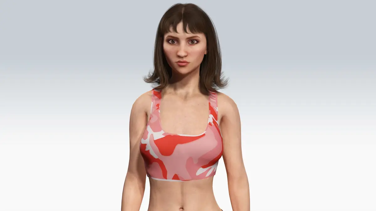 Sexy Sport girl. Fully rigged with more than 150 facial morphs, (blendshapes) so you can modify them to your liking.