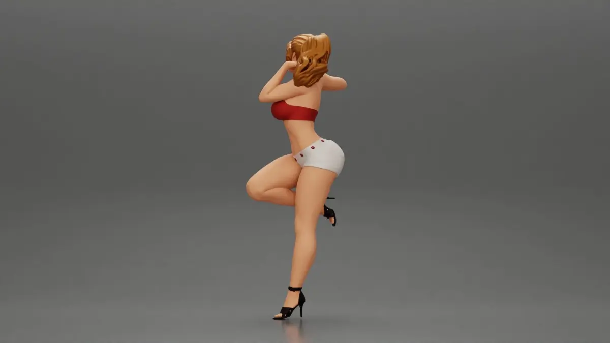 Home Catalog Sexy girl in bra and shorts Leaning Against car on the beach 3D print model