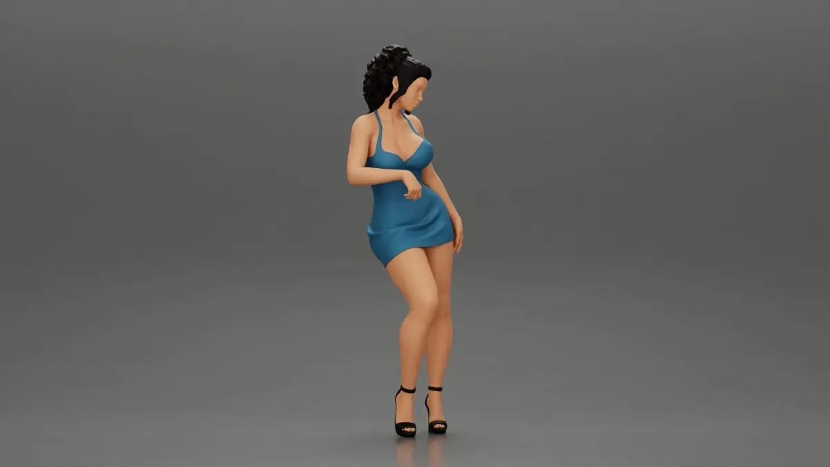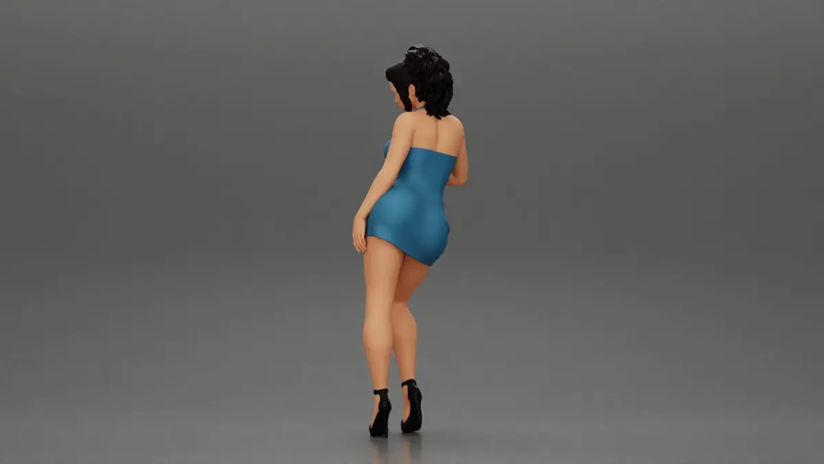 Sexy girl in mini dress Leaning Against Car on the beach 3D print model