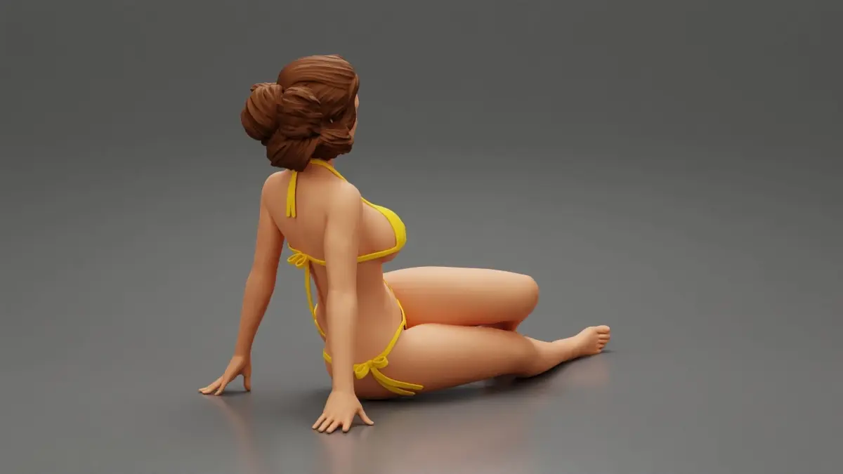 Home Catalog Sexy Woman Girl Sitting in Bikini on Beach 3D print model