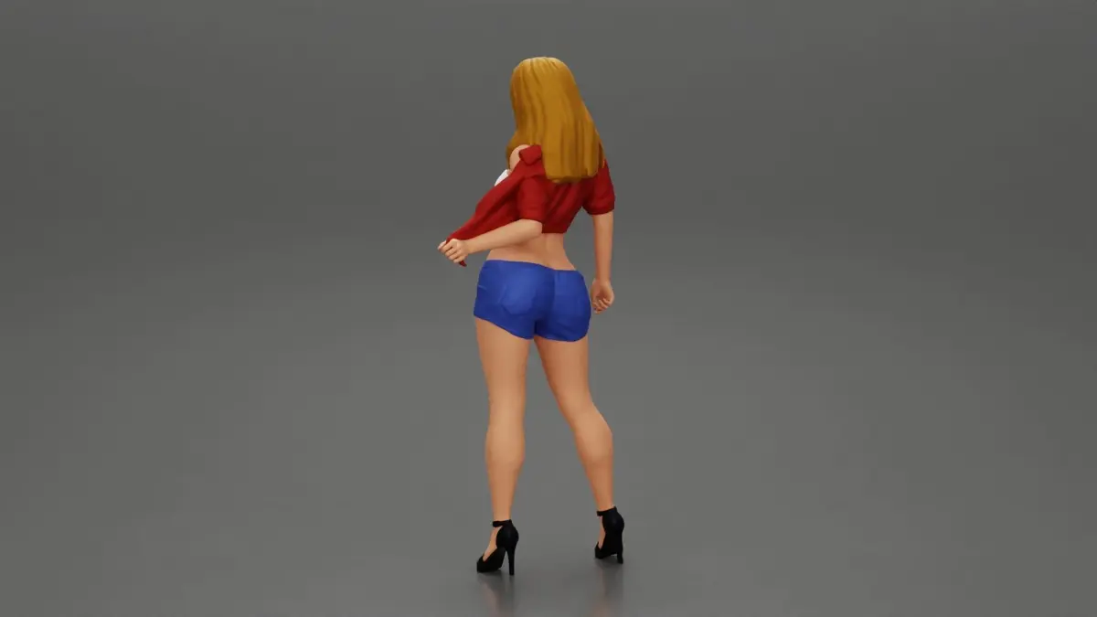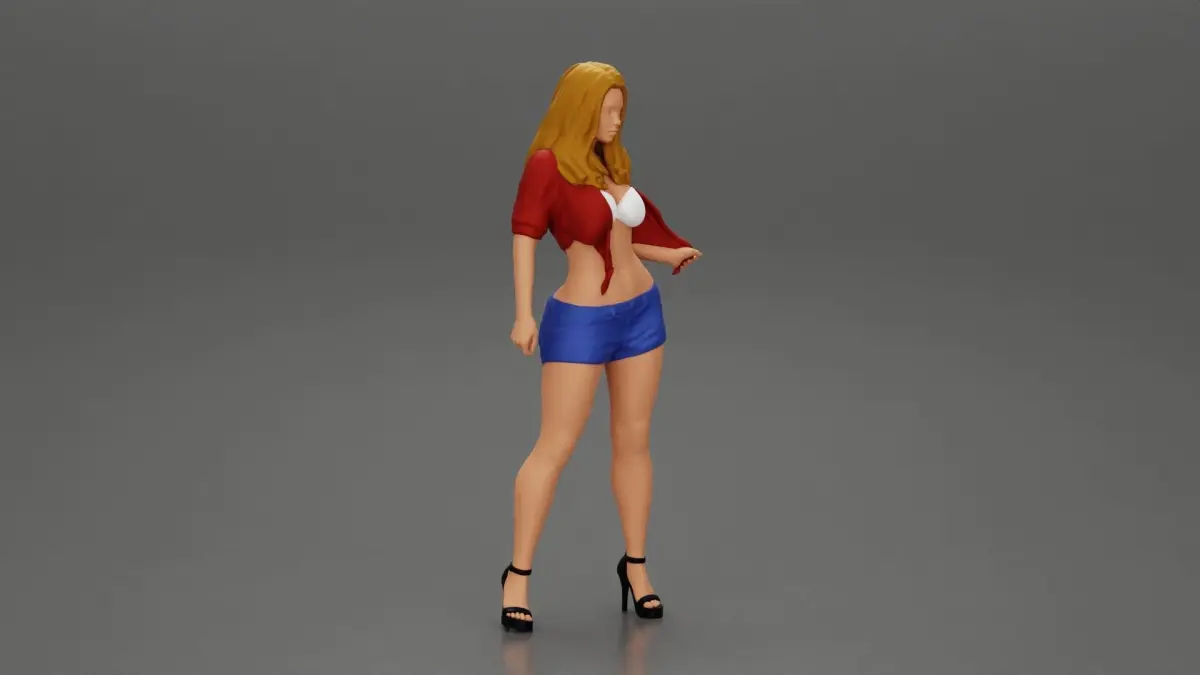 Home Catalog Sexy woman posing in short and shirt with open chest 3D print model