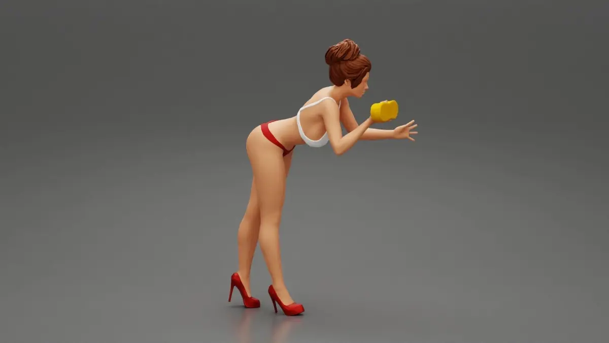 Home Catalog Sexy woman washing car with sponge 3D print model