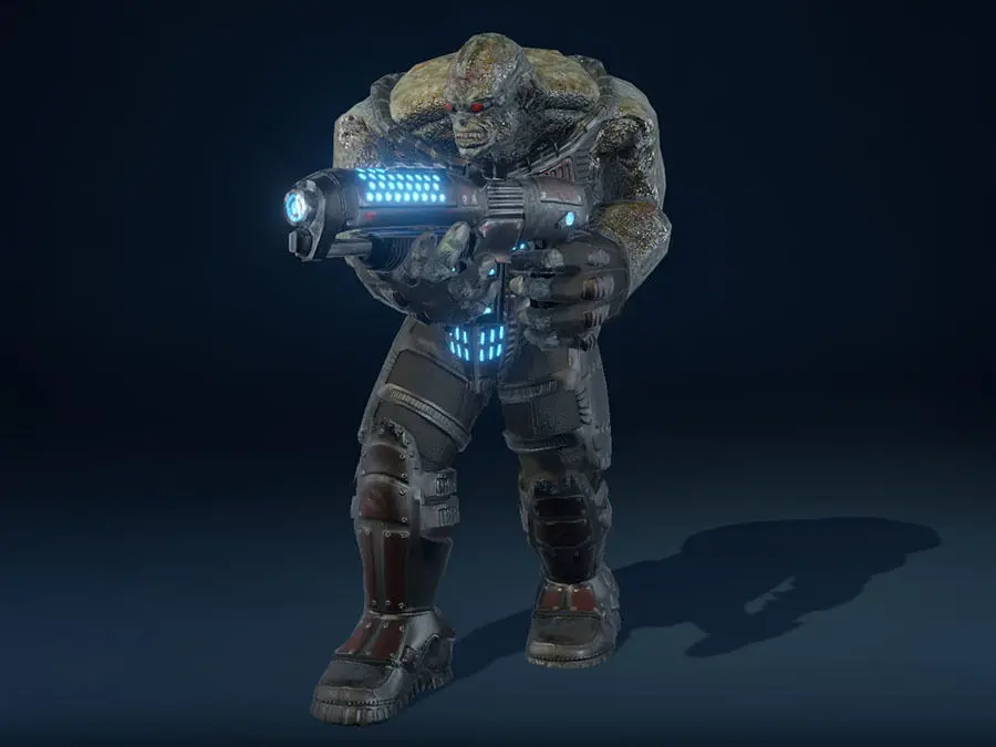3DModels-Textures: SF Orc animated characterAnimated character with 39 animations and 7000 triangles.Model uses standard BIP skeleton.2 materials, body and weapon. Albedo, mask, normal, emissive and AO maps provided. Mask texture contains Metalic texture in RED channel, AO in blue channel and Smoothness map in ALPHA channel.