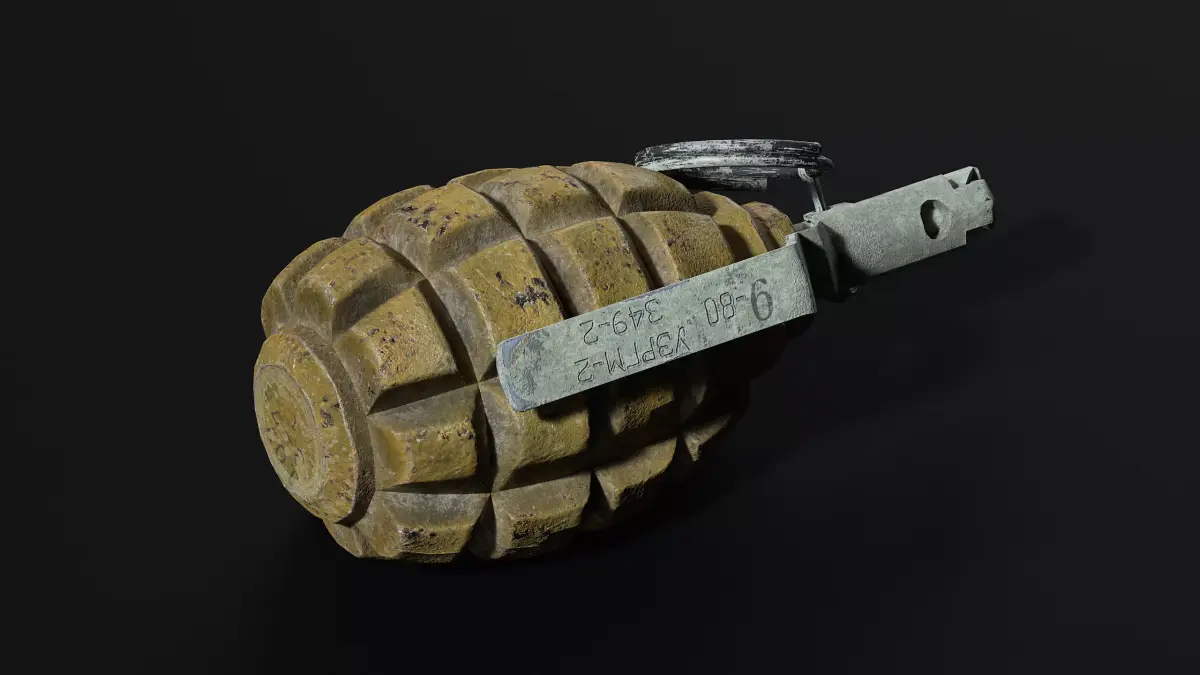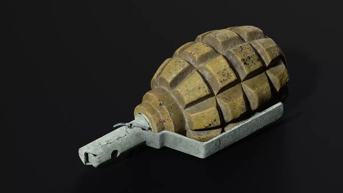 High-detailed game-ready 3d model of a slightly dusty, worn, and rusty soviet F1 grenade optimazed for Unreal engine 5 1 Uvi textures PBR 4krender marmoset toolbag