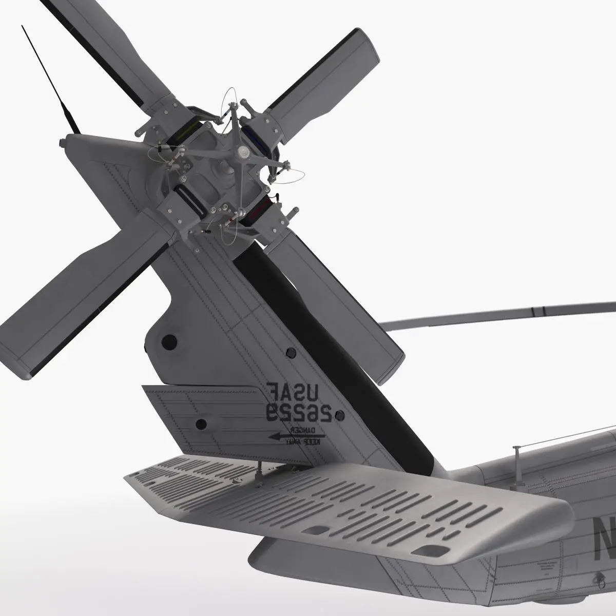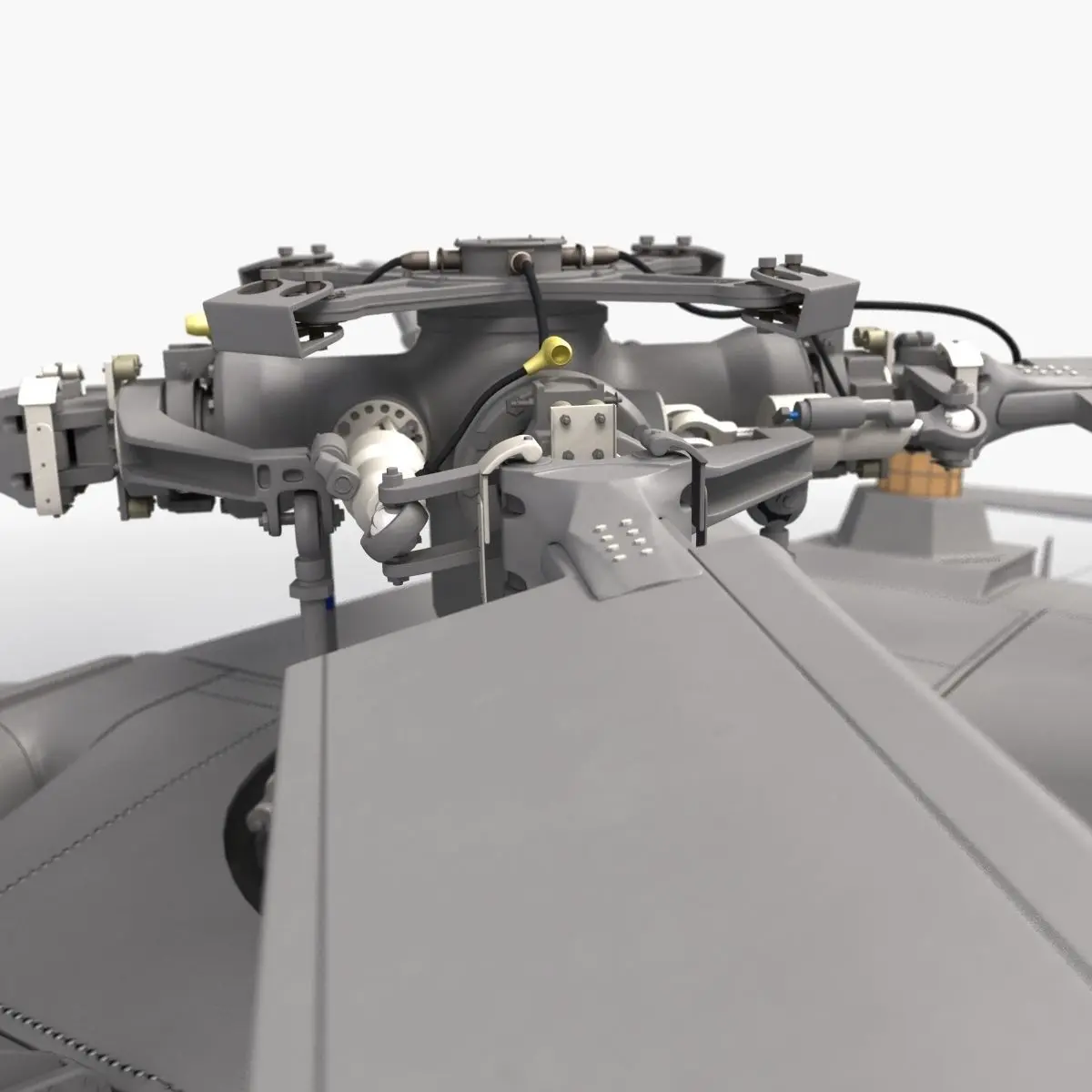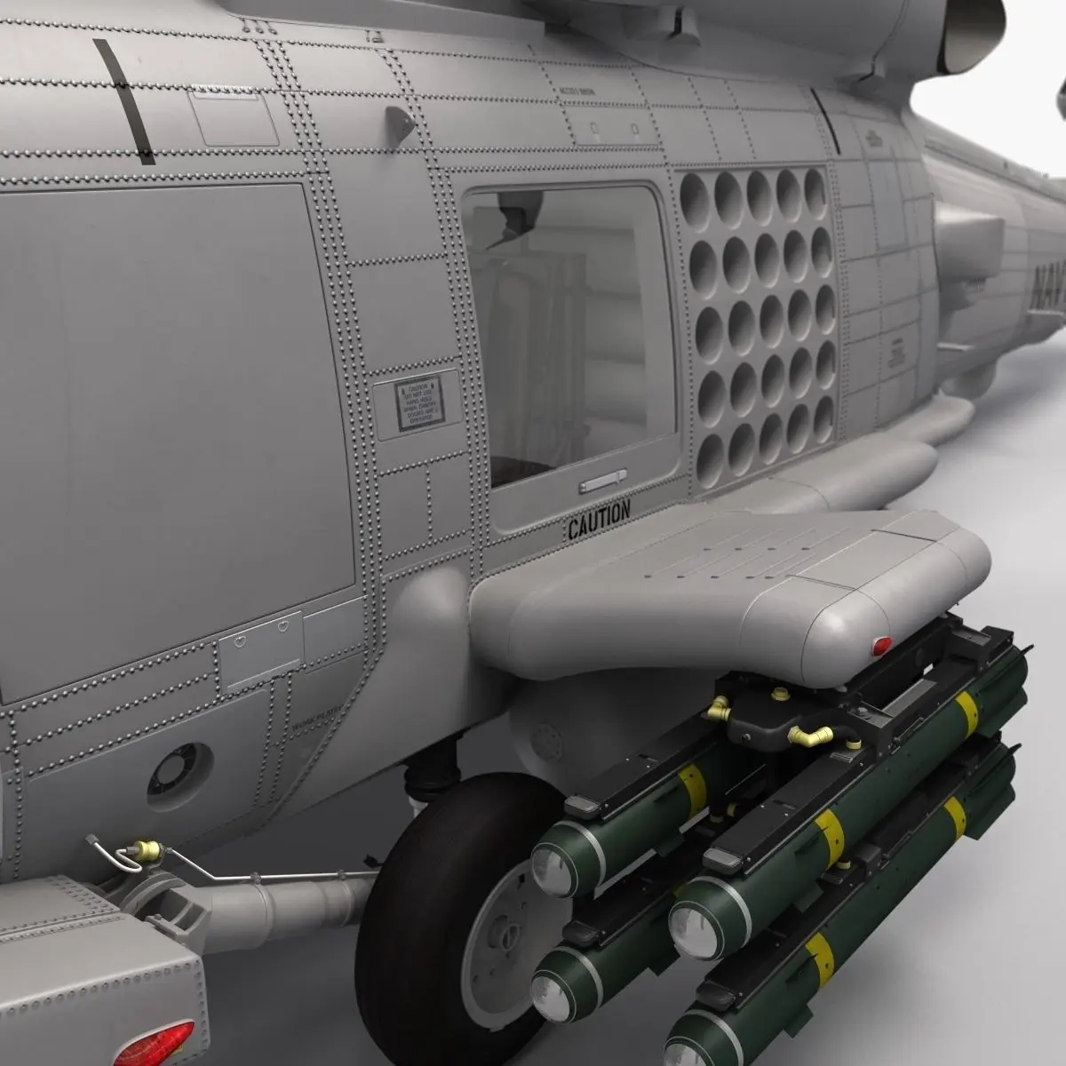 The model has many moving parts including the doors, windows, rotors, landing gears, tail wing, tail fold, and the cockpit controls that are linked to helper objects and wired to animation sliders (3ds Max2010 format) making it quick and easy to choose the model's pose.