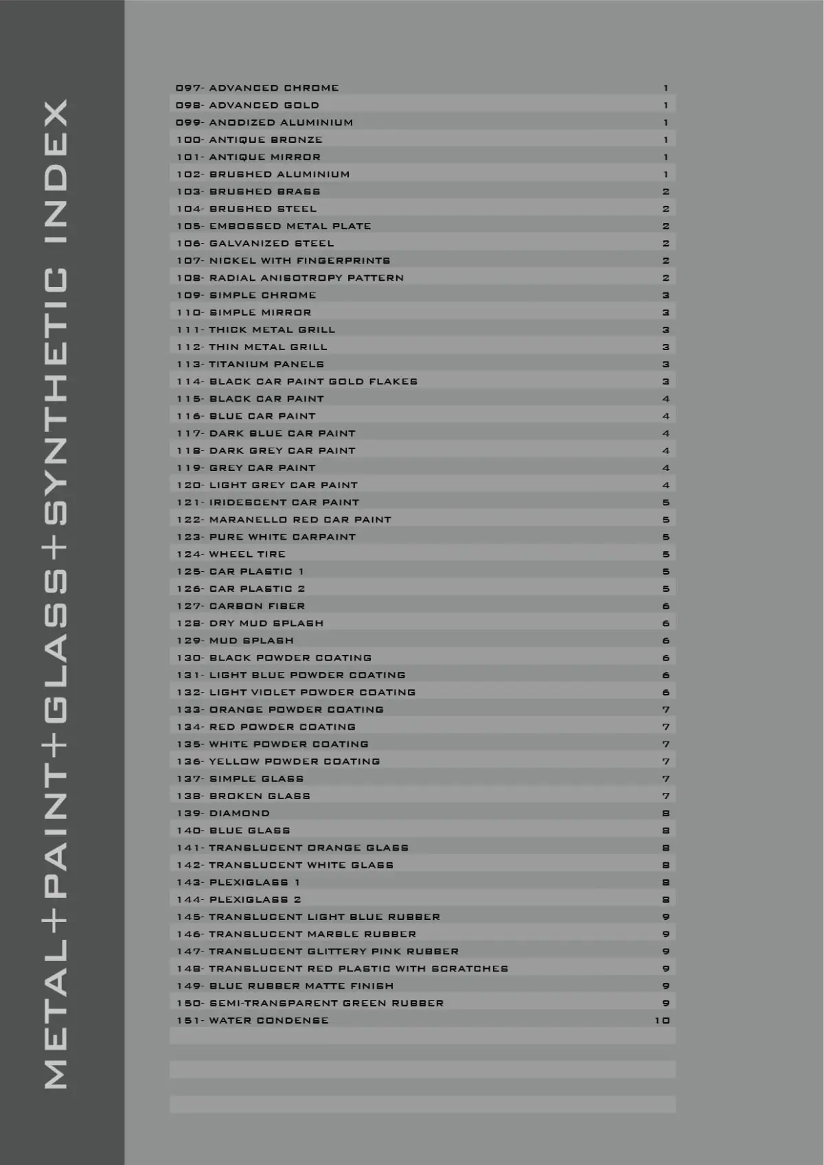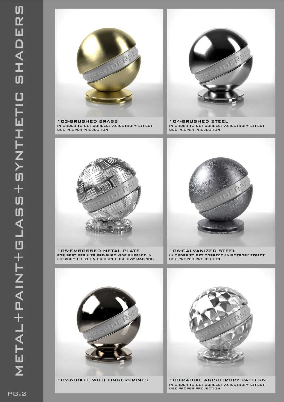 You can download our FREE PDF Catalog to check the exact content of every Bundle before purchasing here: https://www.cgtrader.com/free-3d-models/architectural-details/other/vrayforc4d-shaders-catalogs