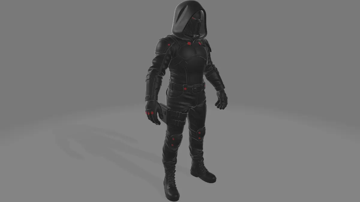 - Shadow Enforcer (Male) – Fully rigged black-ops operative with red tactical accents.