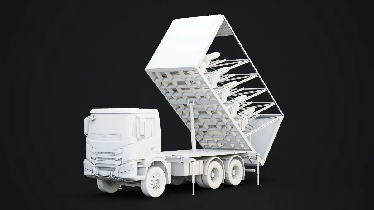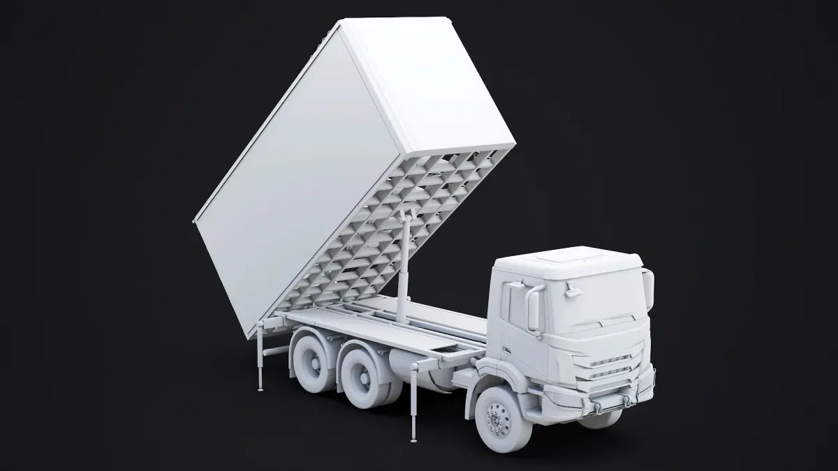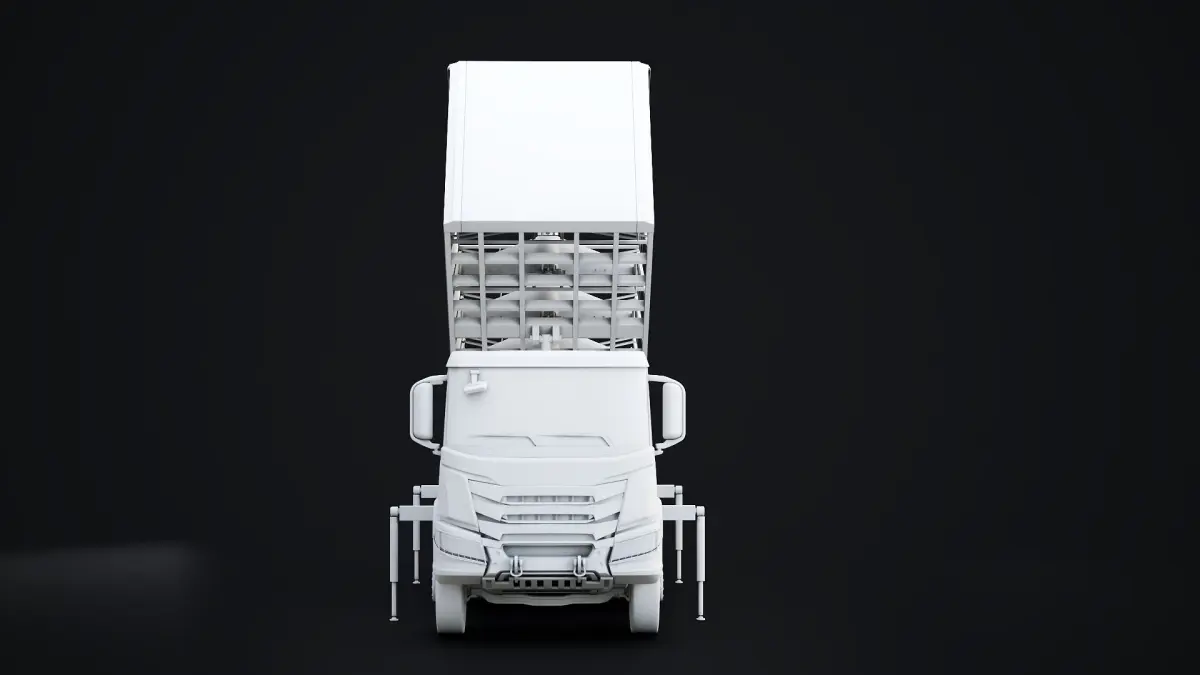 This high-quality 3D model represents a Shahed-136 drone launcher truck, built as a realistic and detailed military UAV launch platform. The asset includes a tilting container rack system equipped with multiple drone launch rails, modeled with accurate proportions and clean topology.