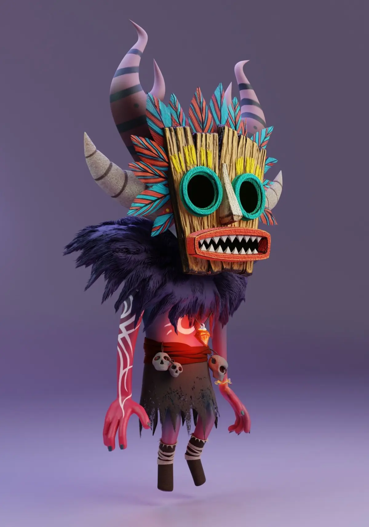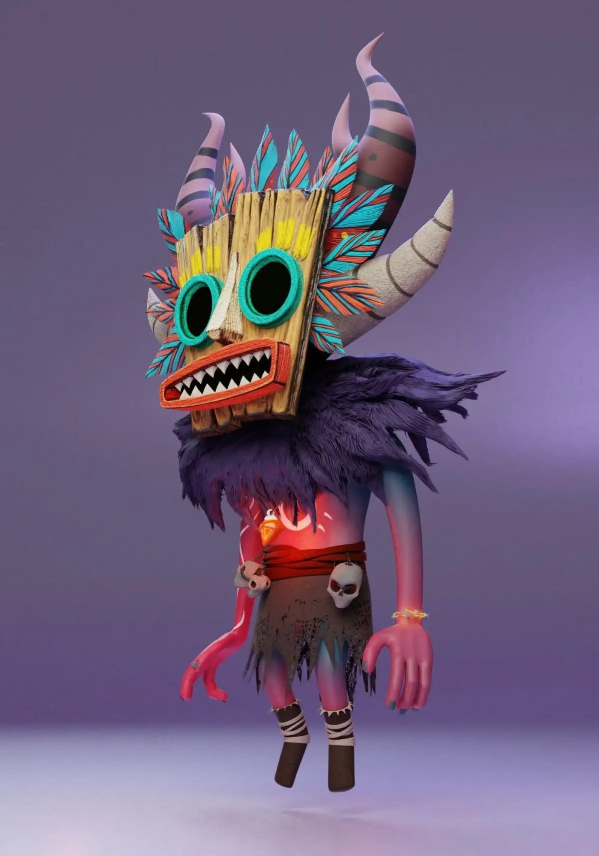 Character Shaman. Made using Blender 2.92. Modifiers are partially saved. Fur particles in the blend file. Render in Cycles, animation in EeveeBlend File Containts:-Character 3d Model-UV Mapping-1 Pose - Materials, lights, animation and render from Blender Cycles