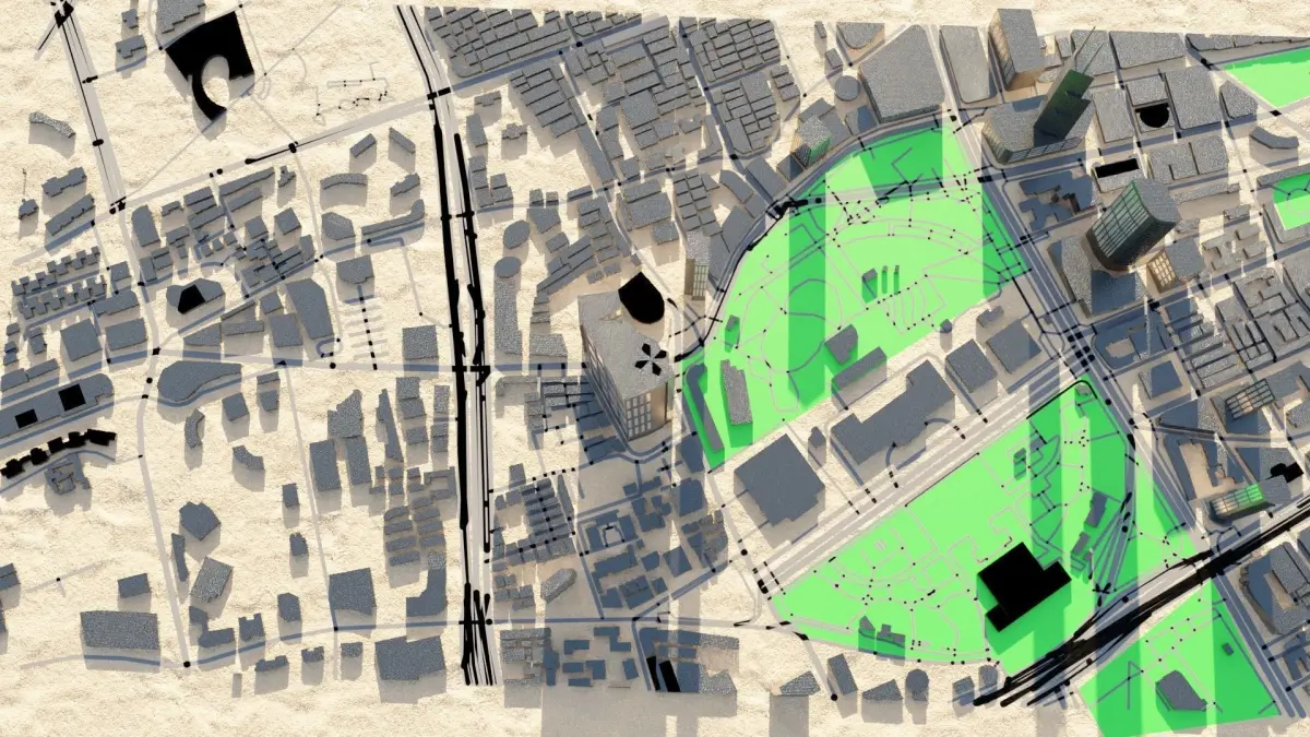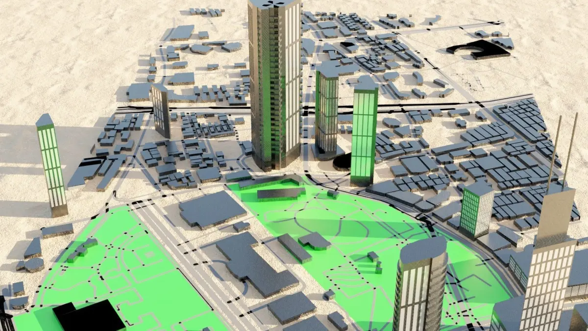 3d model of cityscape shanghai , 3d model created using a blender based on CADMapper, content includes :