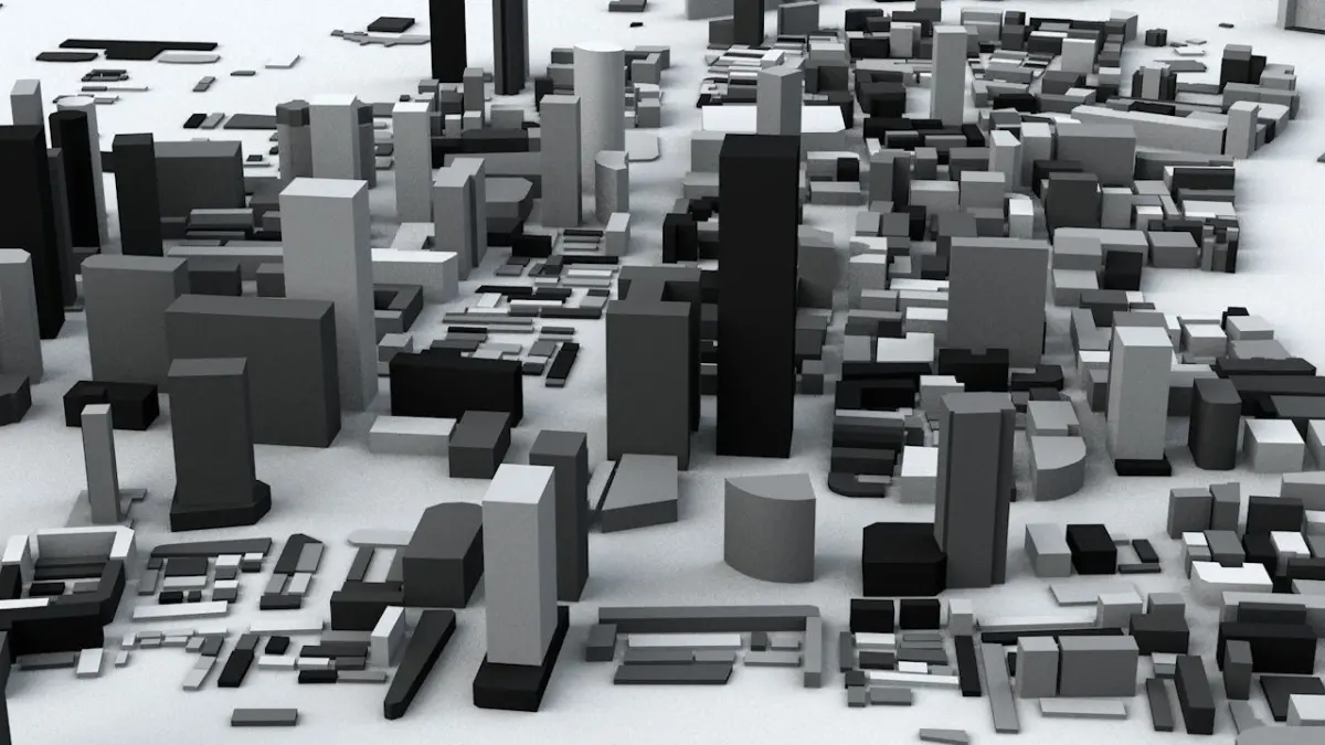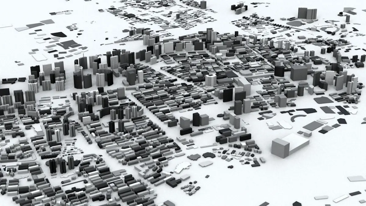 - the model is positioned on a flat surface (all buildings are on the “floor” - no elevation data included)