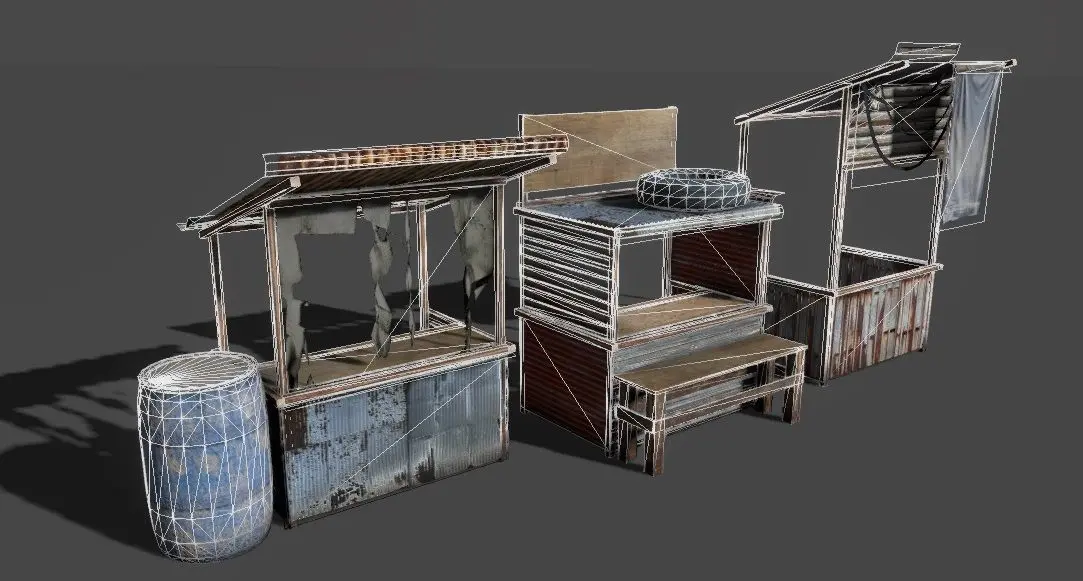 Gameready lowpoly market kiosk pack for your game/scene.