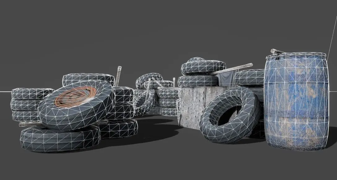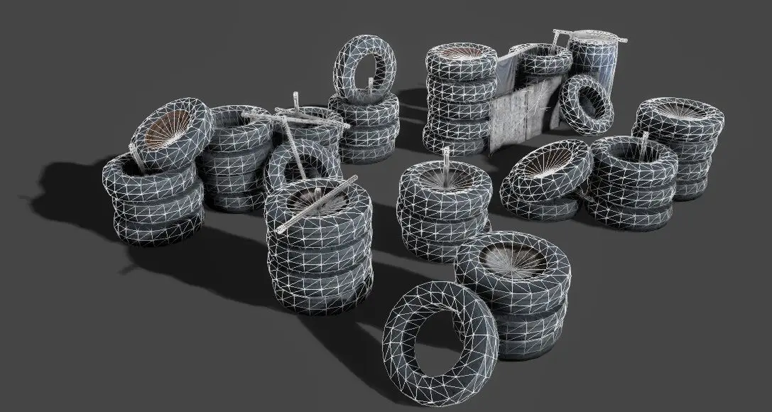 Gameready lowpoly tire barrier stacks pack for your game/scene.