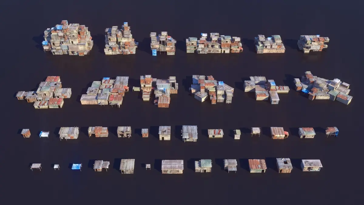 A set of Shantytown modules Low-ploy, can be used in large scenes, vistas, especially in the Shantytown areas of cyberpunk scence