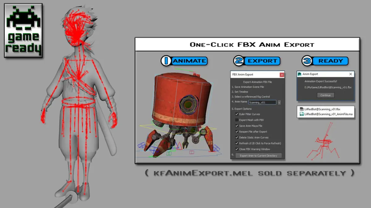 -Easy export to FBX sold separately (search for kfAnimExport.mel)