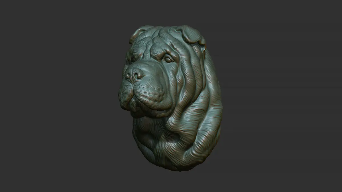 500K STL, OBJ triangulated mesh, Shar Pei dog head is cut off from the bottom
