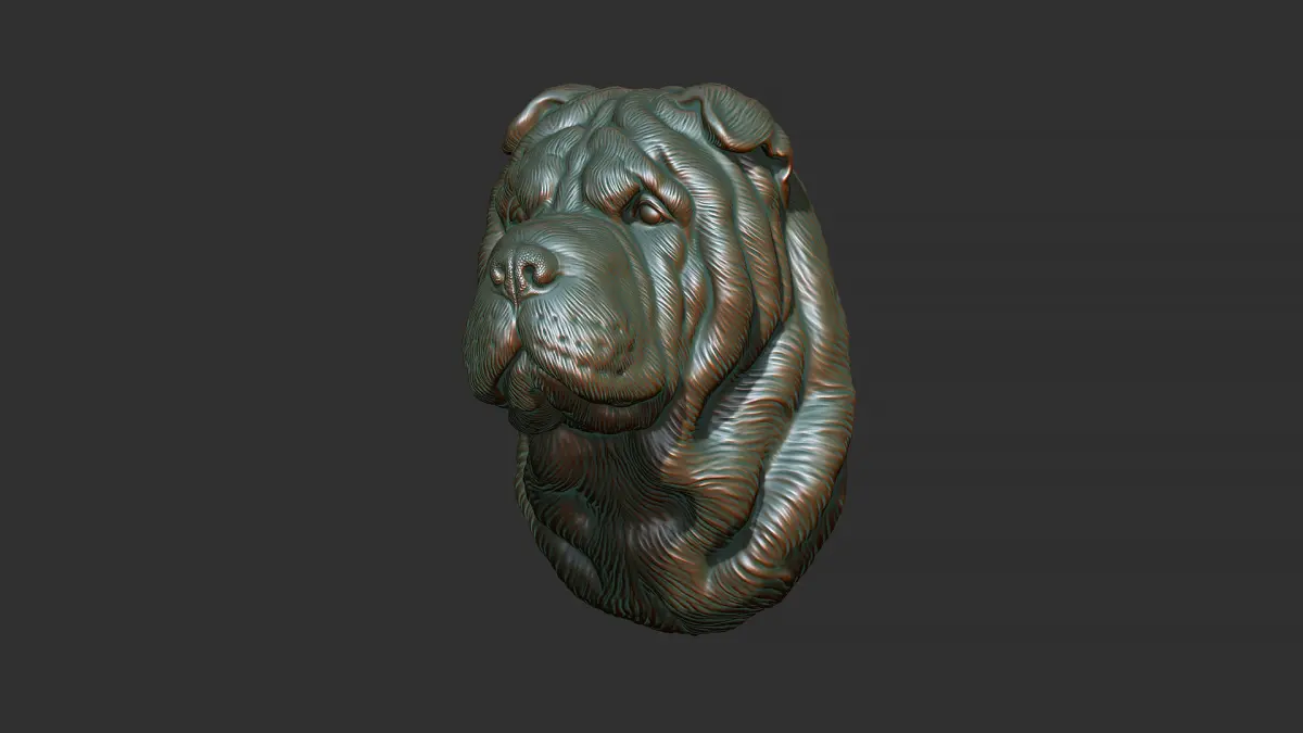 500K STL, OBJ triangulated mesh, Shar Pei dog head on the wall