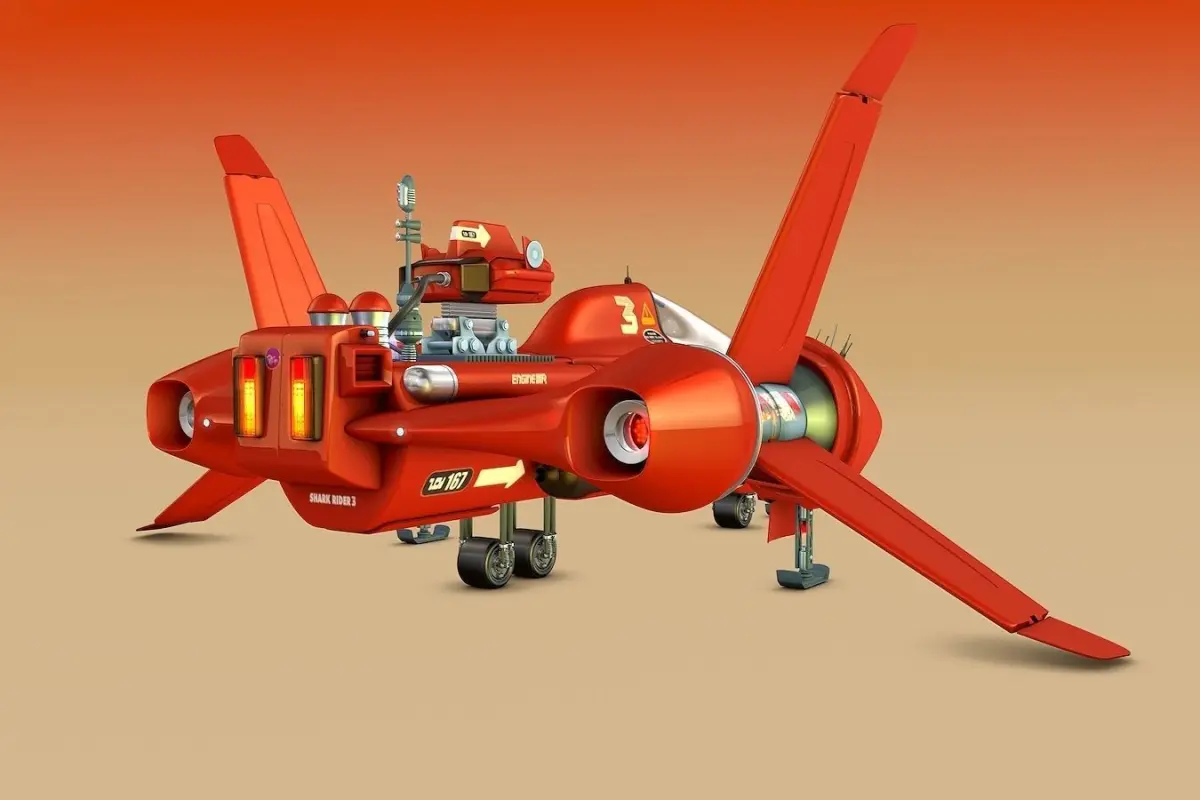 The Shark Rider 3 is available for download as .c4d file.The wings can be controlled by XPresso circuitry.The landing gear is controlled by an editor.