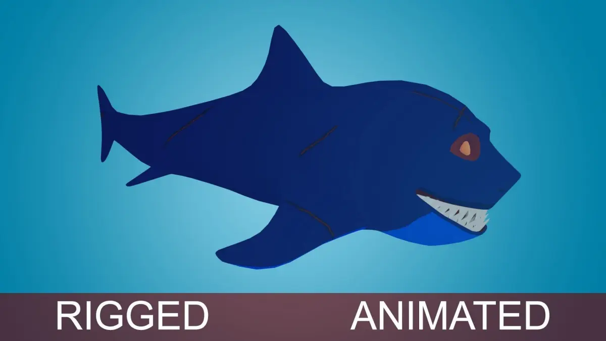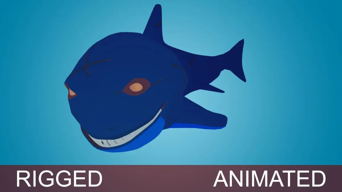 Shark is rigged and animated with a swimming, chasing, and biting animation.
