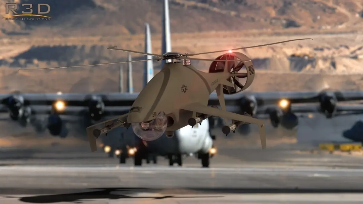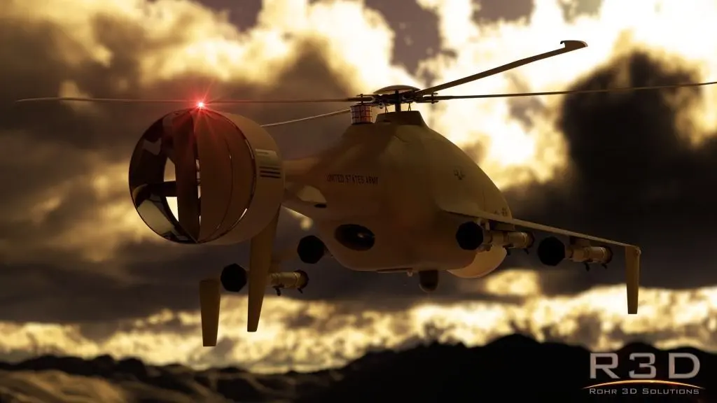 This is my long awaited Sharkeye X Tactical UAS Helicopter. As this model has gotten movement amongst the UAS community I have created the weaponized version with AT-4 (Anti Tank) missiles. Great time and consideration has been made to make this my best and favorite model yet. From the full internal composition of the helicopter mechanics, to the very thought out components on the fuselage with smooth flowing lines like that of a shark. If you have previously purchased my Sharkeye model, there is too much to speak of all the improvements and detail that has been placed in this model.