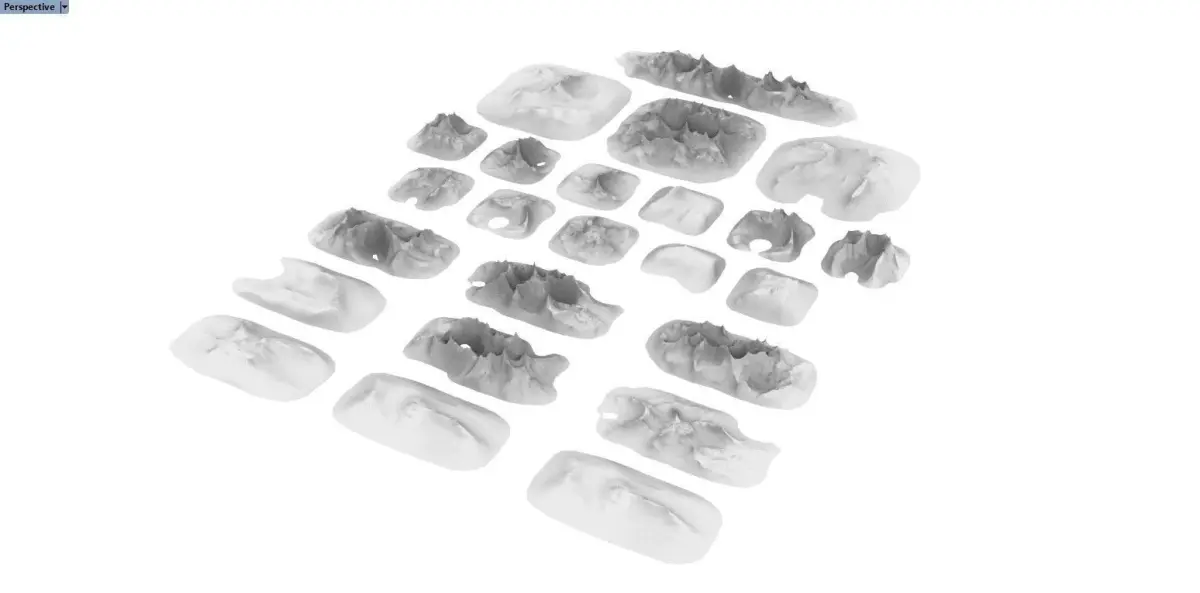 Terrain obstacle pieces made for tabletop gaming. Total 25 pieces of realistic land formations from various biomes. Various impassable pieces of rock formations, asymmetrical hills, mountains, islands, valleys and much more. Good for painting, weathering, vegetation dressing and kitbashing. Suitable for decorating dioramas, combining and tabletop gaming. Suitable for both fantasy, sci-fi and modern gaming, either on board, table or cloth base.