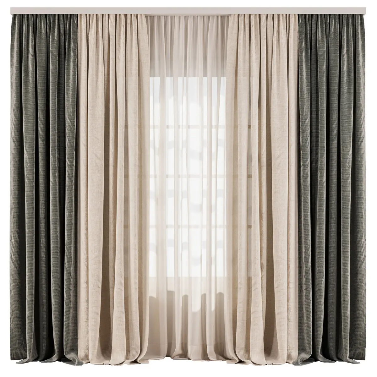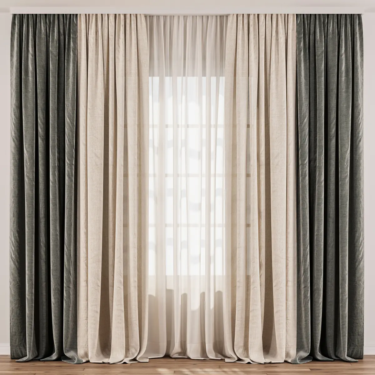 The detailed fabric folds, realistic material properties, and precise light interactions make this curtain set perfect for close-up renders in luxury living rooms, bedrooms, and refined commercial spaces.