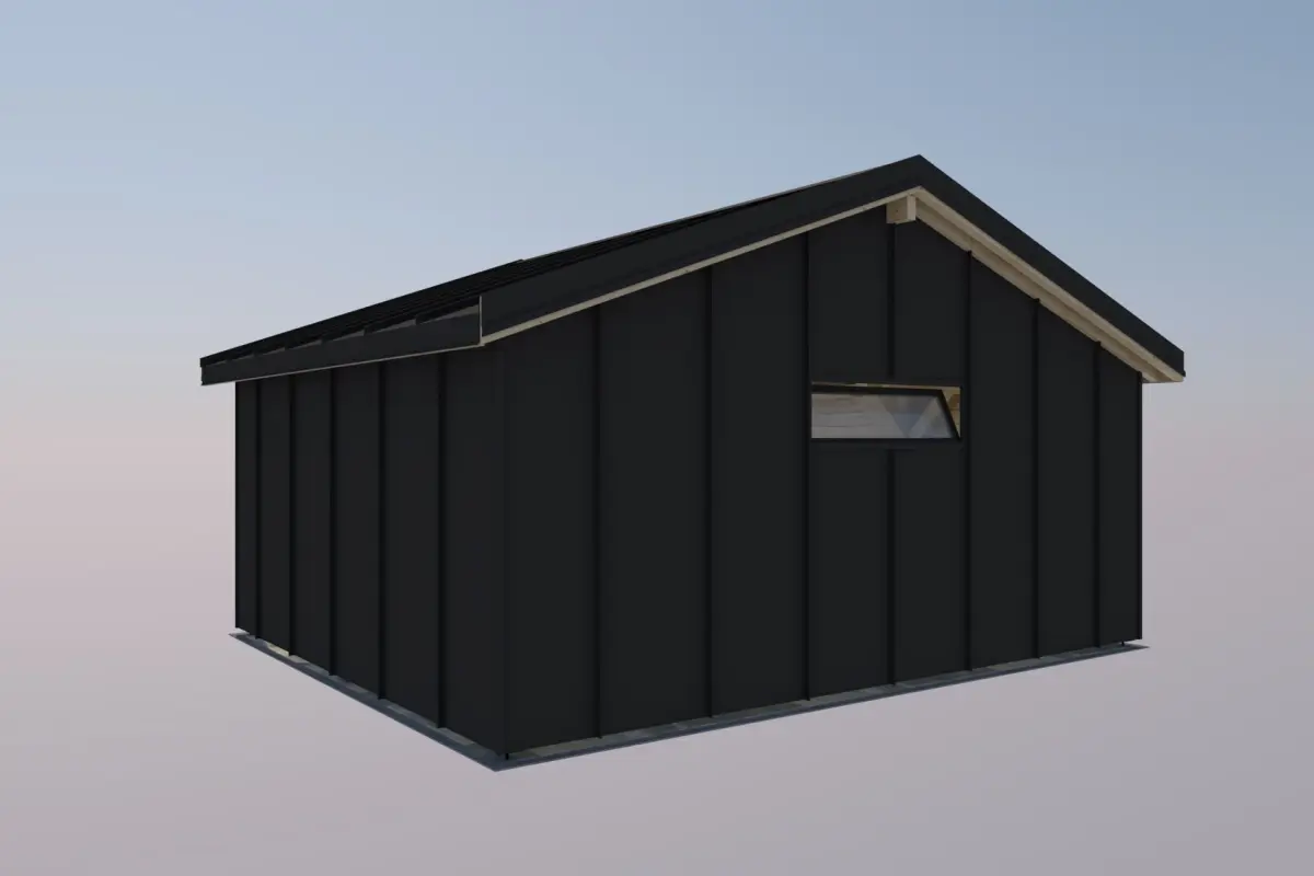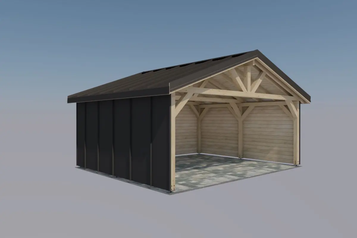 carport 6x5m in the outline of the roof. Made on 6 wooden poles with fastenings to the foundation - steel anchors with screws. Lightweight structure, roof and shingle as one surface.