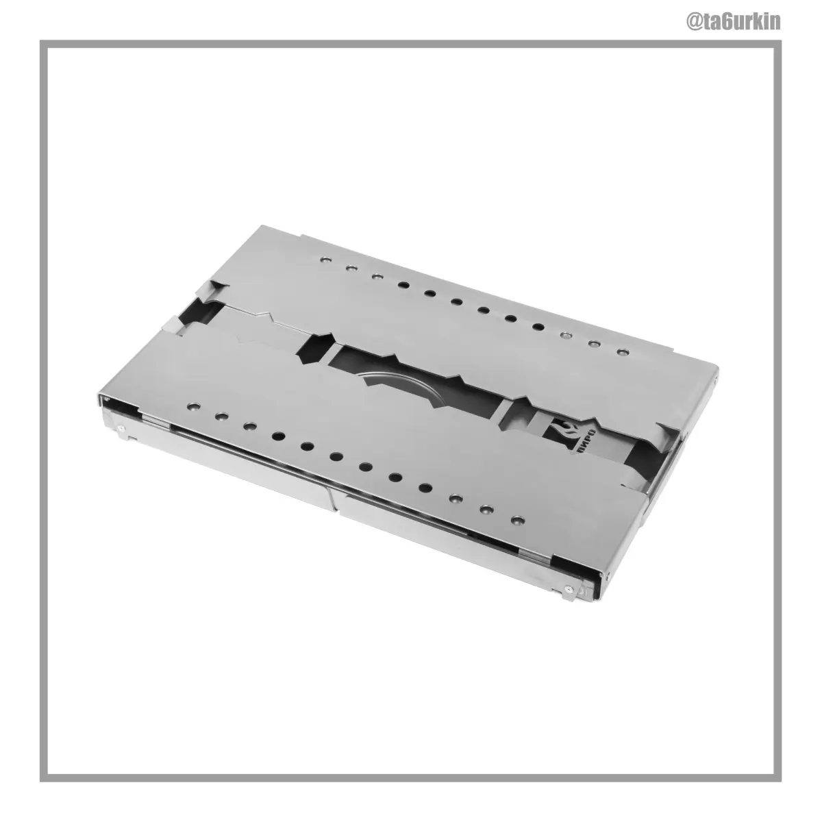 The design of the brazier was completely developed by me from the very beginning, there is a unique latch of the side walls, and the unfolding system allows the assembled brazier to stand evenly and not fold even from strong blows. If the brazier is assembled taking into account the necessary clearances, then the brazier can be opened with two movements in a couple of seconds.Barbecue size in closed position: 404х275х44 mm