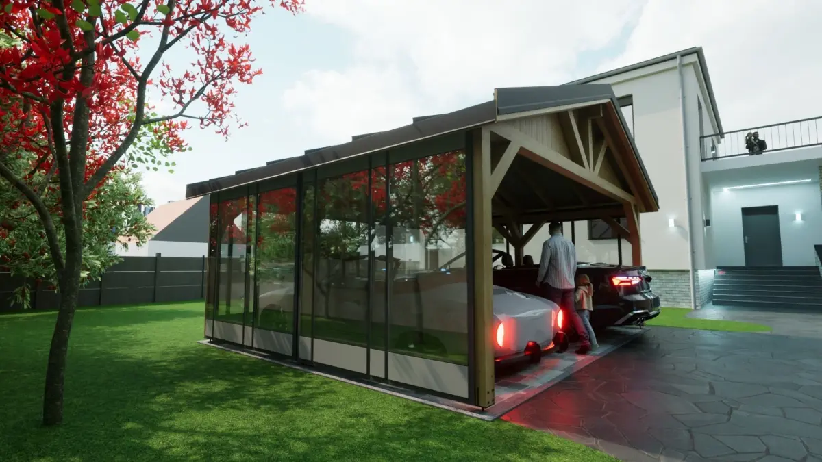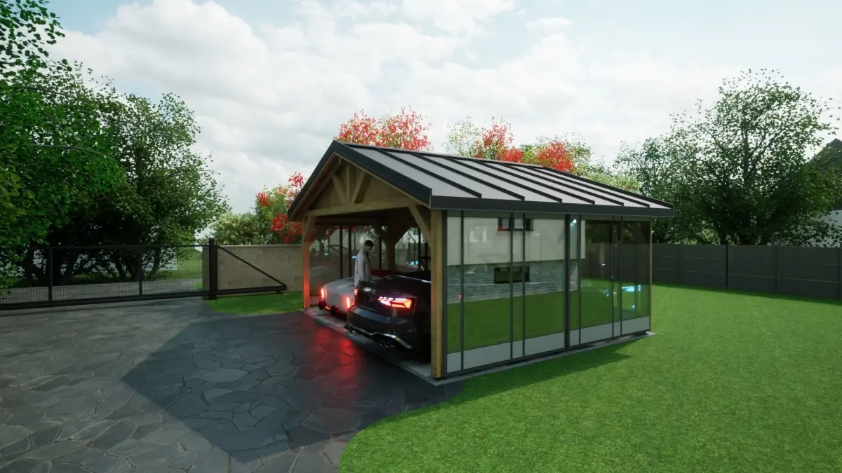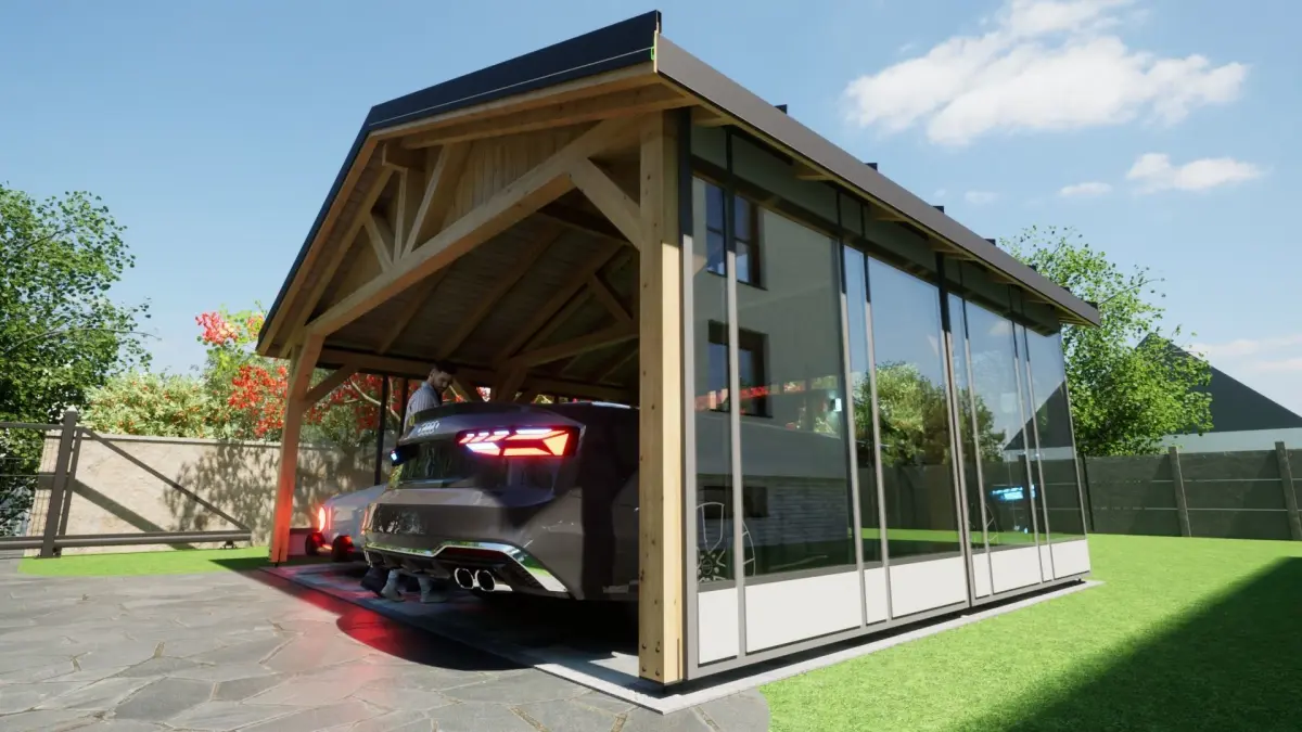 Home Catalog sheet metal wooden carport 5x6 m for render and game 3D model
