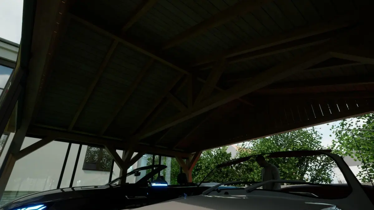 sheet metal wooden carport 5x6 m for render and game 3D model