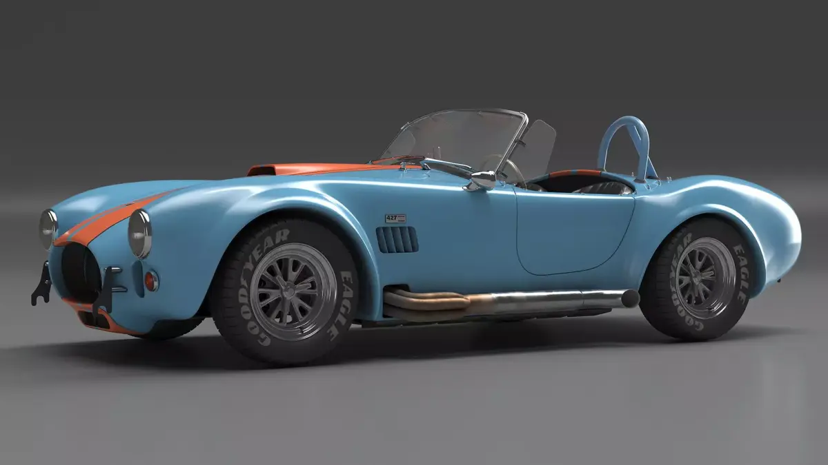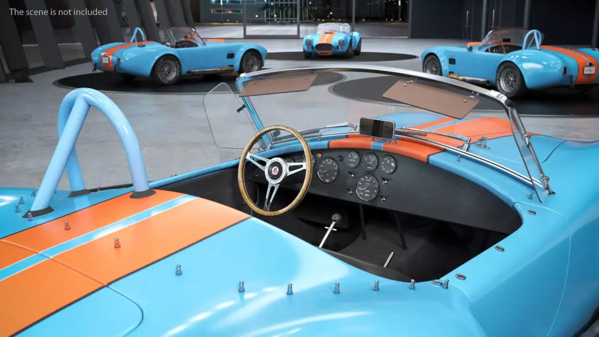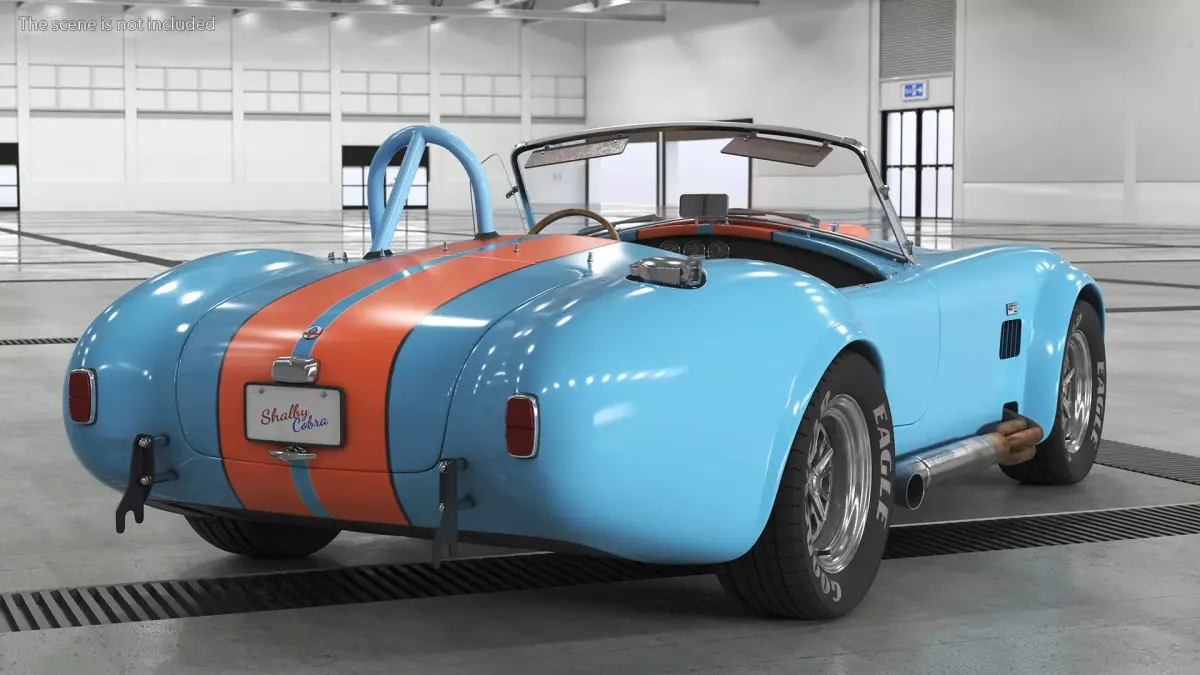 Shelby Cobra 1965 Rigged is a 3d model of the classic 1965 Shelby Cobra, featuring detailed rigging for realistic animations and dynamic movement.