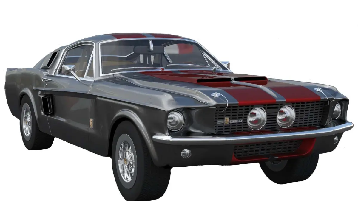 Shelby GT500 1967:The 1967 Shelby G.T. 500 was the first model built in the Shelby G.T. 500 range. It is based on the 1967 Mustang and is equipped with a FE 428 cu in (7.0 L) Police-Interceptor V8 engine topped with an aluminum mid-rise intake and 2X4-barrel 600 CFM Holley carburetors producing 355 bhp (360 PS; 265 kW) at 5,400 rpm and 420 lb?ft (569 N?m) at 3200 rpm of torque. Two thousand forty eight were produced in 1967.Several body parts of the G.T. were made of fiberglass including the front-end, hood, rear tail light panel, deck lid, quarter panel extension, and side scoops.