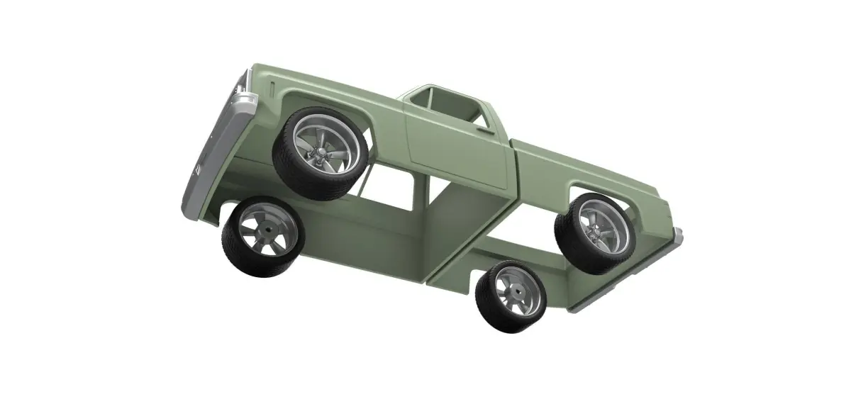 Model consists of parts: body front part, body rear part, front part, front bumper, rear bumper, rims, tires.