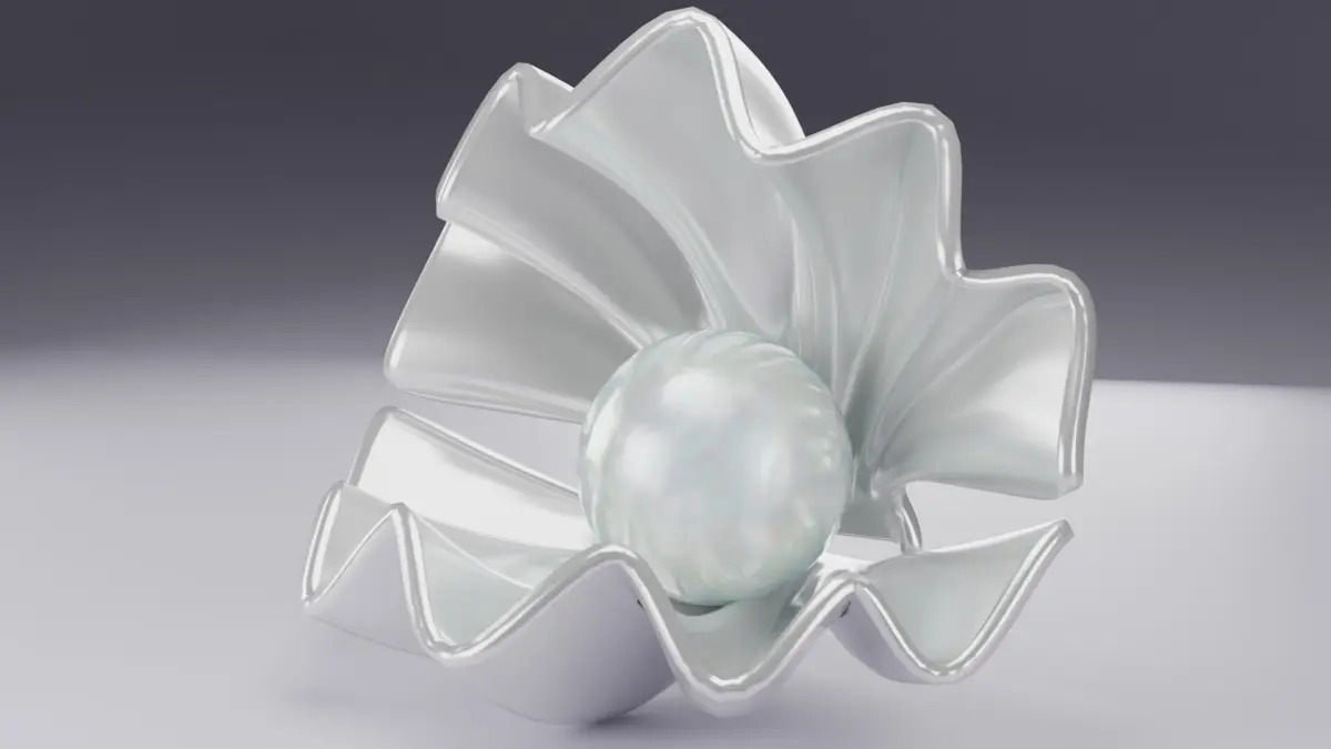 3d model of shell and pearl, 3d model created using a blender, content includes: