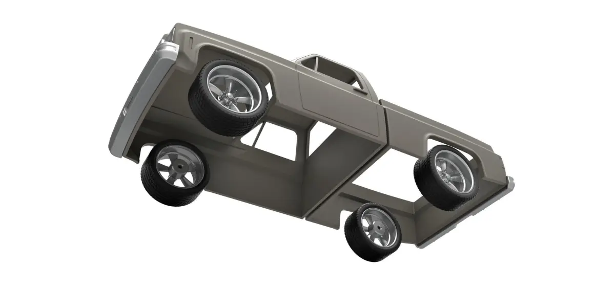 Model consists of parts: body front part, body rear part, front part, front bumper, rear bumper, rims, tires.