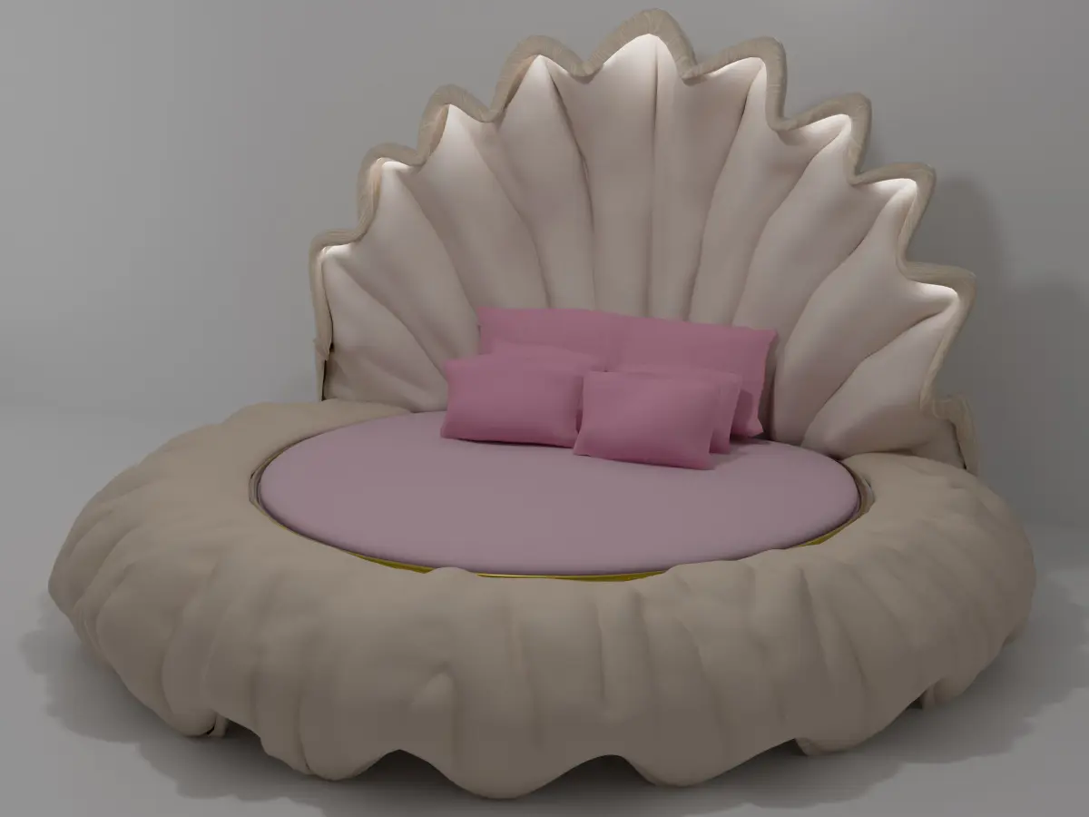 A bed modelled after the natural design of a clam shell. Several reference images and careful outlines (by hand) were used to achieve realistic looks and dimensions.