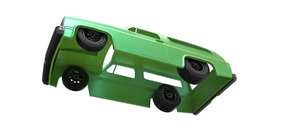 Model consists of parts: body, front part, front bumper, rear part, rear bumper, rims, tires.