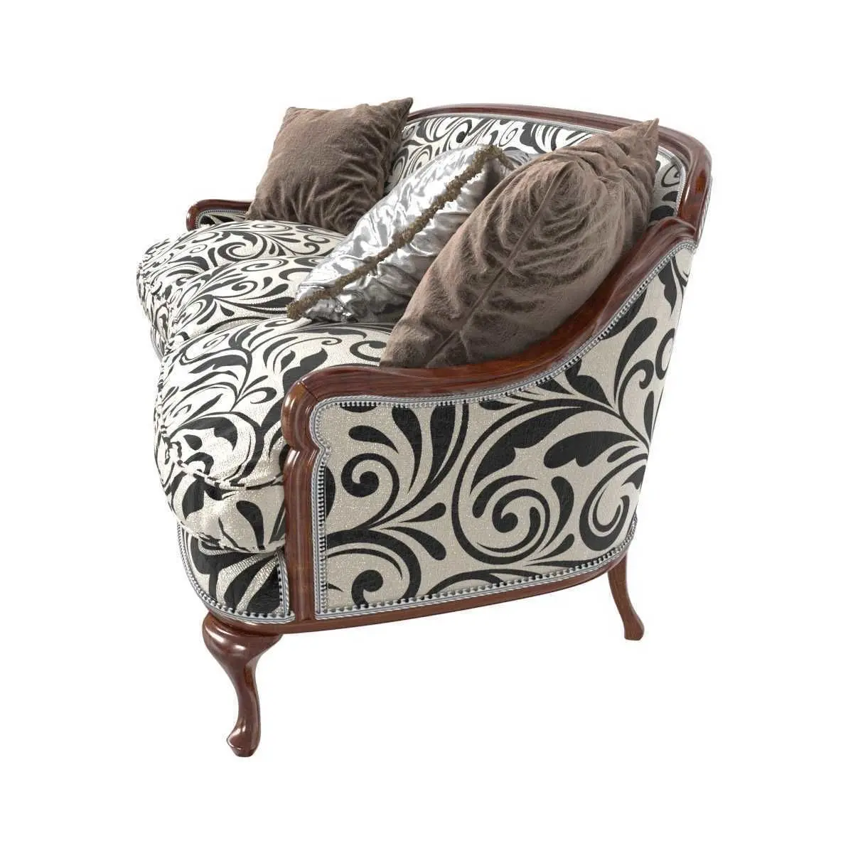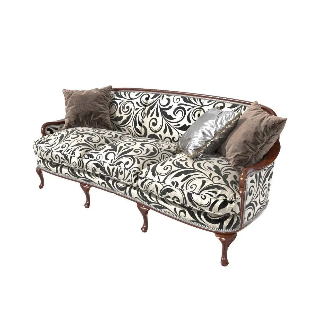 Shelley sofa Angelo Cappellini luxe italy classic floral pattern impero decorative cushions pillows silver beige black brown dark