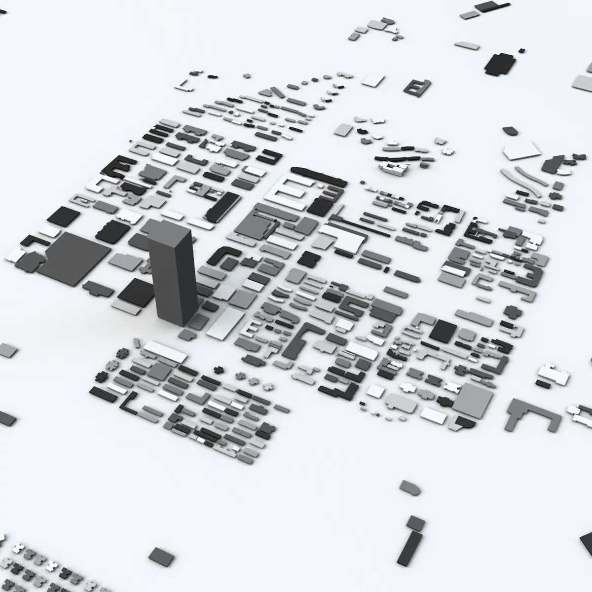 These models are designed to show and present the city/area in the title in a minimalistic concept. They show a close to exact streets and buildings alignments and building heights (excluding parts where there is no or insufficient data to build 3d geometry) therefore they can be used for many purposes but they are not designed to build ie. high precision urbanscape.