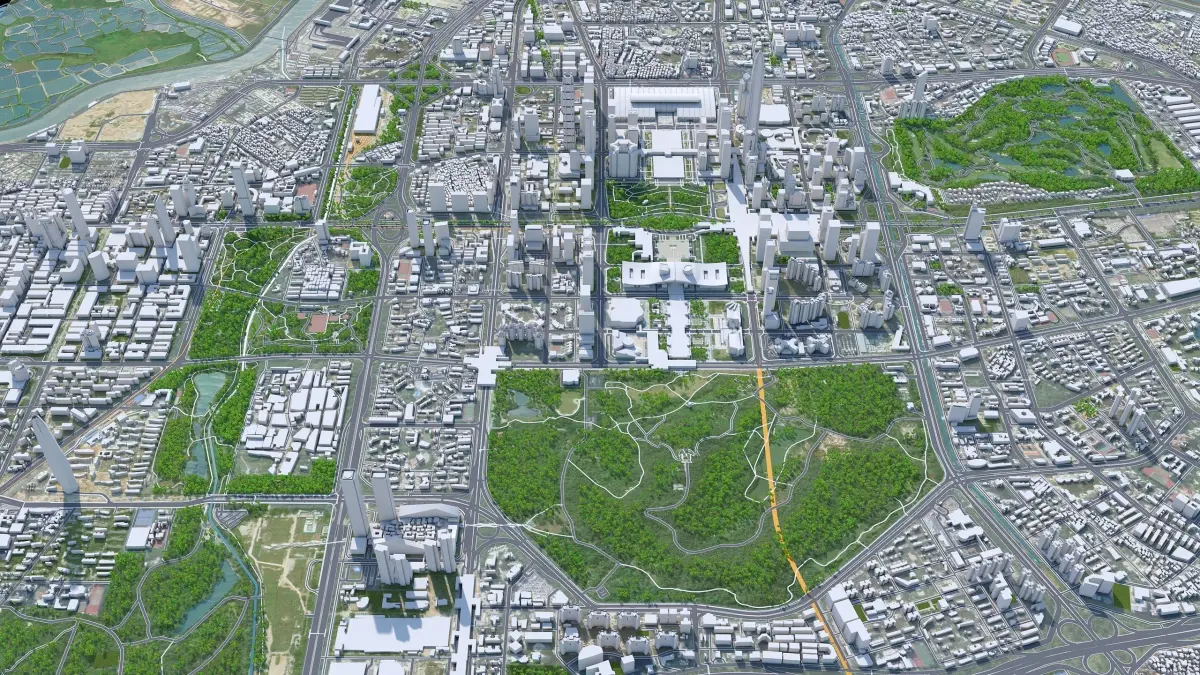 Accurate 3D city model and its surrounding area based on GIS data Year 2022