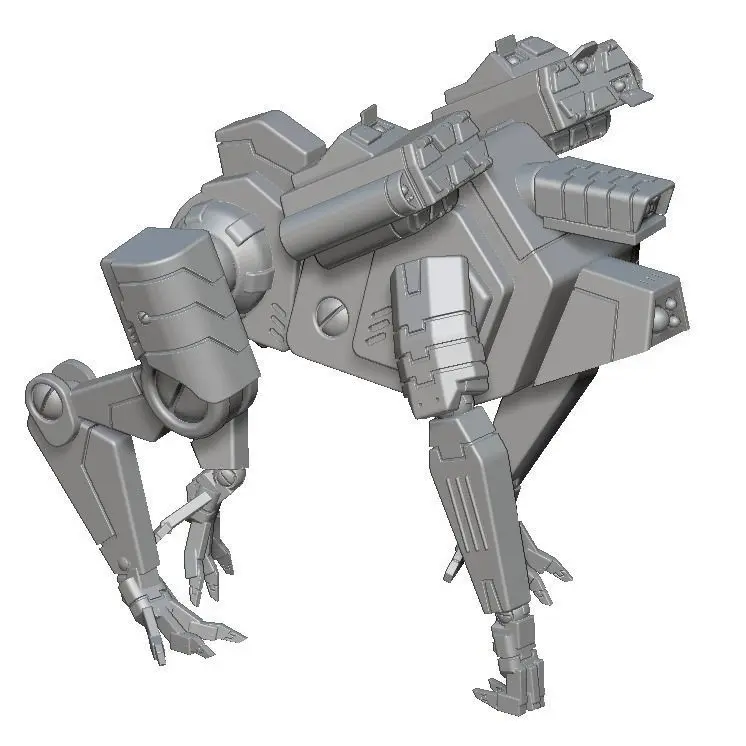 Shepherd Warsuit is a quadrupedal battlesuit designed as fast attack unit employed in harsh and rough terrains. It is usually deployed for patroling purposes in jungle battlefields or rocky deserts where antigravity or bipedal warmachine are not effective. Equipped with two missile racks and with high precision sensors, Shepherds are usually used as pathfinders as soon as fast raids at short distance, able to charge enemies in case of close approach and smashing them thanks to their heavy tonnage.
