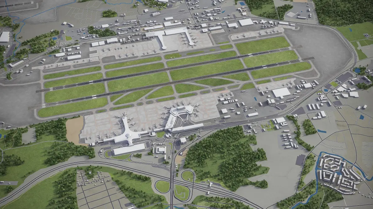 - Trees, vegetation, land-use and airport surface with the textures assigned