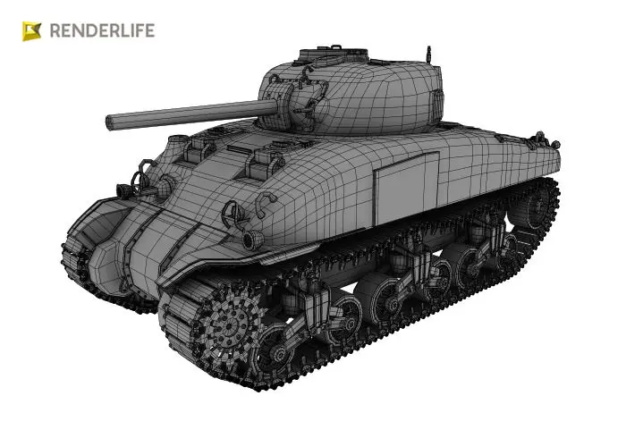 This is a 3D asset depicting the Sherman M4A1 tank. Despite its initial design as a cruiser tank, the M4 formed the backbone of America's tank divisions in the war. It performed reasonably well in Europe, but stood out in the Pacific, where it easily defeated Japan's outdated light tanks. The A1 variant differs from others with its cast hull and 76 mm. gun.