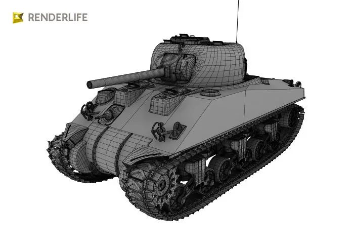 This is a 3D asset depicting the Sherman M4A4 V tank. Despite its initial design as a cruiser tank, the M4 formed the backbone of America's tank divisions in the war. It performed reasonably well in Europe, but stood out in the Pacific, where it easily defeated Japan's outdated light tanks. The A4 variant differs from others in its fully welded body and Chrysler engine.