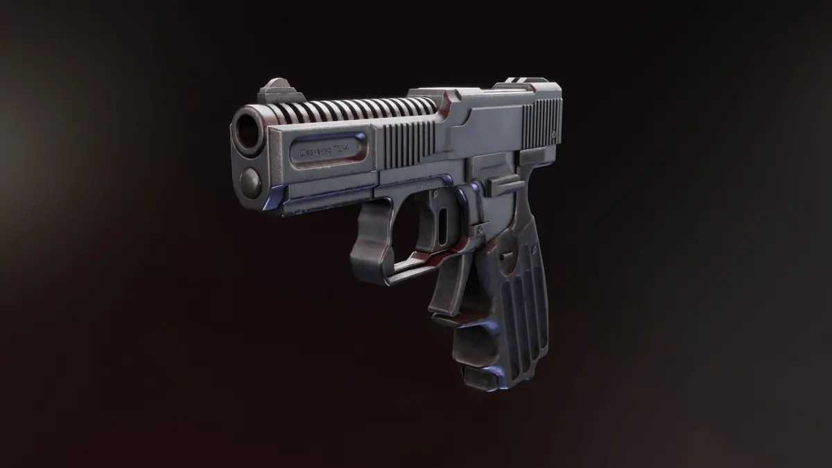This version is one of first prototypes made public, it use 9x18 ammunition. Its was design to be mix of … I have no idea … KB-ST suppose to make bunch of really “revolutionary” weapons but it get busted without any real achievements or even tests made by anyone outside Ukraine. This pistol use similar mechanism as old “Mars” pistol or BondArms Bullpup9 where bullet is draged back to a ramp and then pushed to the chamber and that allows to have tad longer barrel without making whole gun longer. It also have secondary trigger that is used to cock the striker. Only plus of such design is that It could fit to some SciFi environment or post-apocalyptical world.... I think…