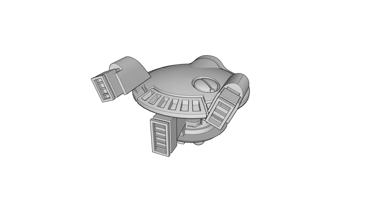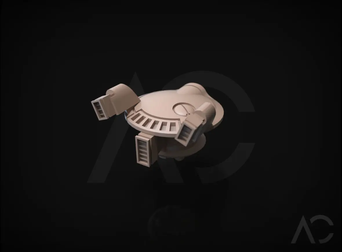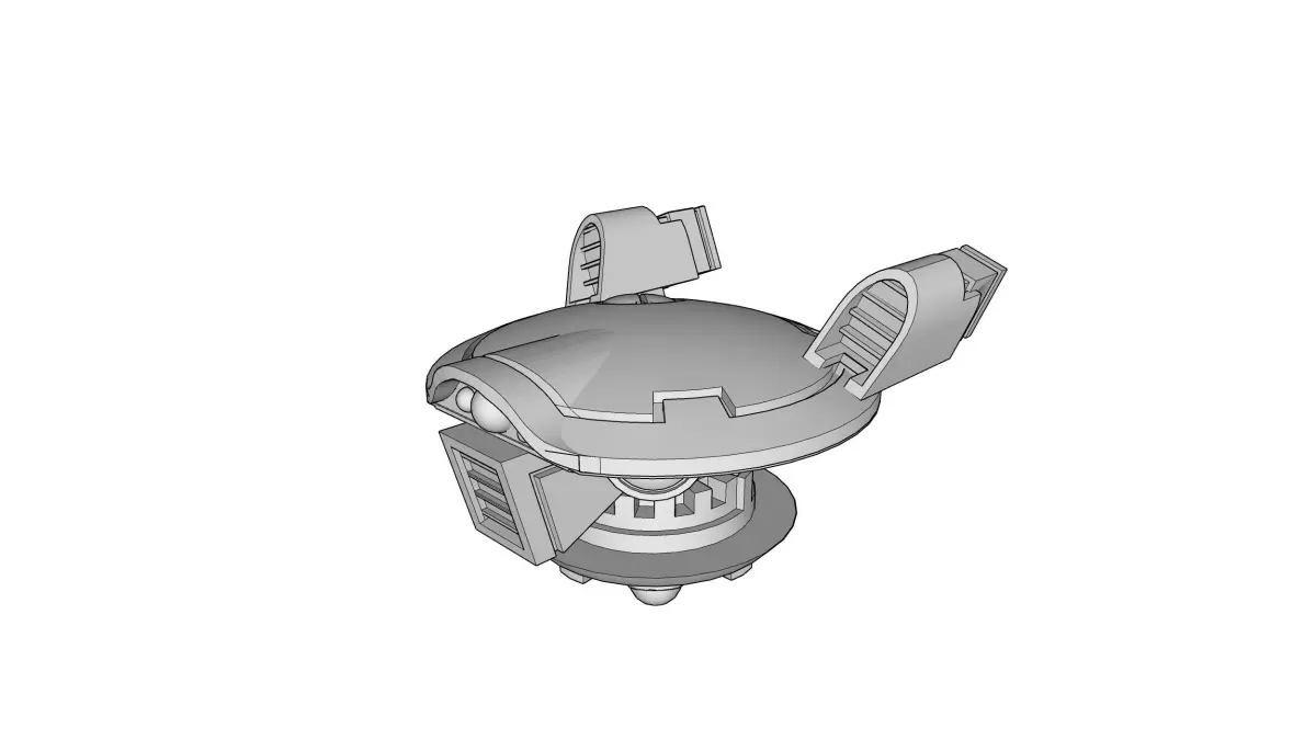Diseño personalizado de Shield Drone de mi ejercito Tau de Warhammer 40.000. Diseñado en Sketchup, impreso en Anycuic Photon S en capas de 0,02mm, con la resina Elegoo Gris Ceramico lavable al agua y comprobado. Tener especial cuidado con la impresión en las partes traseras donde tiene los motores.